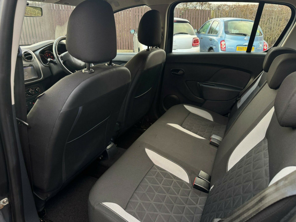 This is a great vehicle that represents really affordable motoring. WHAT IT COMES WITH: A 12 month advisory free MOT, 6 months nationwide warranty, 6 service stamps with the latest being completed on 17/12/2025, 2 keys and even brand new floor mats included.SPEC - The car is filled with features including parking sensors, cruise control, sat-nav, bluetooth, alloy wheels, steering wheel controls and much more!COST - The car is very cheap to run as it is at first very affordable to purchase, is only a group 9 insurance vehicle and has great MPG.WARRANTY - All cars come with a complimentary 6 month nationwide warranty included as standard for peace of mind and this can be extended for up to 3 years. FINANCE - Finance is available and welcome, feel free to enquire about this. ABOUT - Waterdale Motor Company Limited (company number: 14267561) is run from my home which enables me to keep costs down and provide my customers with great cars at a great price. I take pride in how cars are prepared for sale and the reputation I have been able to build. Feel free to check out our website and google reviews online by searching for Waterdale Motor Company. To enquire and book a test drive, please call myself, Olly. 12V Power Socket, 16in Steel Wheels - Stepway Design, 7in Touchscreen Multimedia System, ABS - Anti-lock Braking System, ASR - Traction Control, AUX Input, Air Recirculation - 4-speed Heating and Ventilation, Air Vents - Chrome Surrounds, Airbags - Driver, Airbags - Front Passenger, Airbags - Front Passenger Deactivation, Airbags - Front Side, Anti-intruder Automatic Door-locking System, Bluetooth Connectivity, Bumpers - Front and Rear Upper Section - Body Coloured, Central Console Surround - Graphite, Central Locking - Remote, Child Locks in Rear Doors, Chrome Front Grille, Chrome Heating Control Inserts, Cruise Control and Speed Limiter, DRL - Daytime Running Lights, Door Handles - Black, Door Handles - Interior Front - Graphite, Door Handles - Interior Rear - Black, Door Mirrors - Body Coloured, Door Mirrors - Heated and Electrically Adjustable, Door Open - Visual Warning, Door Panels - Dark Carbon, Driver and Front Passenger Seat Belt Unfastened - Visual and Audible Warning, EBA - Emergency Brake Assist, ECO Mode, ESC - Electronic Stability Control, Electric Windows - Front, Front Courtesy Light, Front Fog Light - Satin Chrome Surrounds, Gear Knob - Leather, Gear Shift Indicator, Headlights - Single Optic with Chrome Surrounds, Headlights Left On - Audible and Visual Warning, Headrests - Rear Height Adjustable x3, Height-Adjustable Drivers Seat, Height-Adjustable Front Headrests, Height-Adjustable Steering Wheel, High Level Third Brake Light, ISOFIX Points for Child Seats in Both Outer Rear Seats, Instrument Dial Surrounds - Chrome, Luggage Compartment - Light, Manual Air Conditioning, Map Pockets on Front Seatbacks, Outside Temperature Gauge, Power Assisted Steering, Radio with 24 AM-FM Presets and Sound by Arkamys, Raised Ride Height, Rear Parking Sensors, Rear Passenger Grab Handles, Roof Bars - Satin Chrome, Satellite Navigation - MediaNav 7in Touchscreen Multimedia System, Scuff Plates - Front and Rear - Satin Chrome, Seats - 60-40 Split Folding Rear, Side Sills - Black, Speakers - x2 - Front, Speakers - x2 - Rear, Steering Column Mounted Fingertip Controls, Steering Wheel - Chrome Logo Surround, Steering Wheel - Graphite Lower Insert, Stepway Logo on Front Door Panel, Sunvisor with Vanity Mirror - Passenger, Thatcham Approved Engine Immobiliser, Tinted Windows, Trip Computer - 7 Function, Tyre Inflation Kit, Tyre Pressure Monitor, USB Connection for MP3 Players, Wheelarch Extensions - Black, Comfort Pack. Part service history