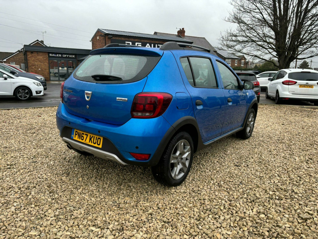 6 Service Stamps In The Book - Last Serviced May 2025 - Will Come With 12mth MOT On PurchaseThis 2017 Dacia Sandero Stepway TCe Laureate presents an exceptional opportunity with its remarkably low mileage of just 31923 miles, a testament to its careful ownership. This Euro 6 compliant 0.9L petrol model, with only two previous owners, offers a practical and well equipped driving experience. Inside, you will find comfort and convenience features such as a front centre armrest and manual air conditioning, perfect for any journey. Stay connected on the go with the integrated Bluetooth connectivity, and enjoy peace of mind with the rear parking sensors making manoeuvring easier.The Dacia Sandero Stepway TCe Laureate stands out from other vehicles in its class thanks to several key highlights. Its impressive fuel economy of 55 mpg means fewer trips to the petrol station and more money in your pocket. Furthermore, its low insurance group rating contributes to lower running costs, making it an economical choice. Practicality is also a strong suit, with generous boot space designed to accommodate all your luggage or shopping needs.. 12V Power Socket, 12V Socket for Rear Passengers, 16in Steel Wheels - Stepway Design, 3-Point Rear Seatbelts x3, 3-Speed Front Windscreen Wipers, 7-Function On-Board Computer, AUX Input, Air Recirculation - 4-speed Heating and Ventilation, Air Vents - Satin Chrome, Airbags - Driver, Airbags - Front Passenger with Deactivation Function, Airbags - Front Side, Anti-intruder Automatic Door-locking System, Anti-lock Braking System - ABS and Emergency Brake Assist - EBA, Bluetooth Connectivity, Boot Light, Bumpers - Front and Rear Body Coloured, Central Console Surround - Satin Chrome, Central Locking - Remote, Child Locks in Rear Doors, Chrome Front Grille, Chrome Heating Control Inserts, Cruise Control and Speed Limiter, DAB-FM-AM Radio, Door Handles - Black, Door Mirrors - Heated and Electrically Adjustable, Door Mirrors - Metal Grey, Door Open - Visual Warning, Door Panels - Dark Carbon, EBD - Electronic Brakeforce Distribution, ECO Mode, ESC - Electronic Stability Control with ASR - Traction Control and Hill Start Assist - HSA, Electric Windows - Front, Electric Windows - Rear, Fog Lamp Embellisher - Satin Chrome, Front Courtesy Light, Front Fog Lights, Front Passenger Grab Handle, Gear Knob - Leather, Gear Shift Indicator, Headlights - Double Optic with Chrome Surrounds, Headlights Left On - Audible and Visual Warning, Headrests - Rear Height Adjustable x3, Heated Rear Window, Height-Adjustable Drivers Seat, Height-Adjustable Front Headrests, Height-Adjustable Front Seatbelts, Height-Adjustable Steering Wheel, High Level Third Brake Light, ISOFIX Points for Child Seats in Both Outer Rear Seats, Instrument Dial Surrounds - Satin Chrome, Interior Door Handles - Front - Satin Chrome, Interior Door Handles - Rear- Satin Chrome, LED Automatic Daytime Running Lights, Manual Air Conditioning, Map Pockets on Front Seatbacks, Power Assisted Steering, Raised Ride Height, Rear Parking Sensors, Rear Passenger Grab Handles, Rear Washer-Wipe, Rev Counter, Roof Bars - Satin Chrome, Satellite Navigation - MediaNav Evolution 7in Touchscreen Multimedia System, Seatbelt not Fastened - Visual and Audible Warning, Seats - 60-40 Split Folding Rear, Side Sills - Black, Skid Plates - Front and Rear - Satin Chrome, Soft Feel Steering Wheel, Stepway Logo on Front Door Panel, Sunvisor with Vanity Mirror - Passenger, Thatcham Approved Engine Immobiliser, Tinted Windows, Tyre Inflation Kit, Tyre Pressure Monitor, USB Connection for MP3 Players, Wheelarch Extensions, Armrest - Front Centre.