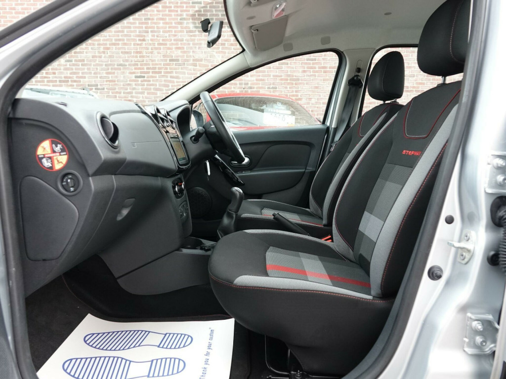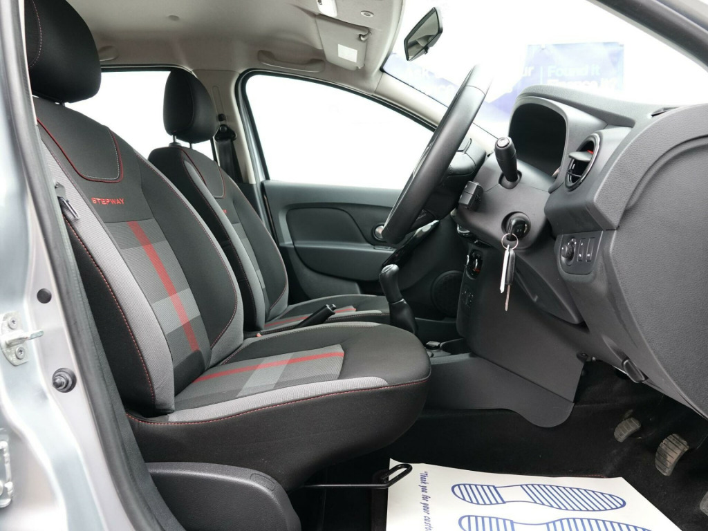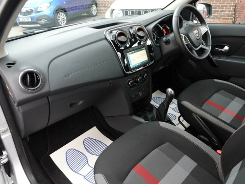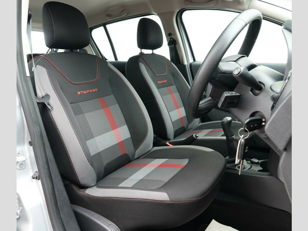 This 2019 Dacia Sandero Stepway TCe Techroad boasts an exceptionally low mileage of just 14,815 miles, a remarkable figure for its age, and benefits from a full service history with its last service completed on 5th June 2025 at 13,307 miles, with a clear vehicle history check. This Euro 6 compliant 0.9 litre petrol model, in the Techroad trim, comes equipped with desirable features including manual air conditioning, Bluetooth connectivity for seamless audio streaming and calls, and rear parking assistance with both a camera and sensors to aid manoeuvring.The Dacia Sandero Stepway TCe Techroad offers several advantages that set it apart. Its impressive fuel economy of 52 mpg means you can enjoy longer journeys with fewer stops for refuelling, making it an economical choice. Furthermore, its low insurance group rating indicates that running costs will be kept to a minimum. Practicality is also a strong point, with generous boot space making it ideal for carrying shopping, luggage, or equipment. ergency spare wheel, techroad cloth - black and grey with red inserts, 12v power socket by gear lever, 12v socket for rear passengers, 16in steel wheels - flex expression, 3-point rear seatbelts x3, 3-speed front windscreen wipers, 7-function on-board computer, aux input, air recirculation - 4-speed heating and ventilation, air vents - satin chrome, airbags - driver, airbags - front passenger with deactivation function, airbags - front side, anti-intruder automatic door-locking system, anti-lock braking system - abs and emergency brake assist - eba, black wheel arch extensions, bluetooth connectivity, boot light, bumpers - front and rear body coloured, central console surround - satin chrome, central locking - remote, child locks in rear doors, chrome front grille strip, chrome heating control inserts, cruise control and speed limiter, dab-fm-am radio, door handles - black, door handles - interior front - satin chrome, door handles - interior rear - satin chrome, door mirrors - heated and electrically adjustable, door mirrors - metal grey, door open - visual warning, door panels - dark carbon, eco mode, esc - electronic stability control with asr - traction control and hill start assist - hsa, electric windows - front, electric windows - rear, fog lamp embellisher - satin chrome, front courtesy light, front fog lights, front passenger grab handle, gear knob - leather, gear shift indicator, headlights - double optic with chrome surrounds, headlights left on - audible and visual warning, headrests - rear height adjustable x3, heated rear window, height-adjustable drivers seat, height-adjustable front headrests, height-adjustable front seatbelts, height-adjustable steering wheel, high level third brake light, isofix points for child seats in both outer rear seats, instrument dial surrounds - satin chrome, led automatic daytime running lights, manual air conditioning, map pockets on front seatbacks, power assisted steering, raised ride height, rear parking camera, rear parking sensors, rear passenger grab handles, rear washer-wipe, rev counter, roof bars - metal grey, satellite navigation - medianav evolution 7in touchscreen multimedia system, seatbelt not fastened - visual and audible warning, seats - 60-40 split folding rear, side sills - black, skid plates - front and rear - satin chrome, soft feel steering wheel, stepway logo on front door panel, sunvisor with vanity mirror - passenger, thatcham approved engine immobiliser, tinted windows, tyre inflation kit, tyre pressure monitor, usb connection for mp3 players