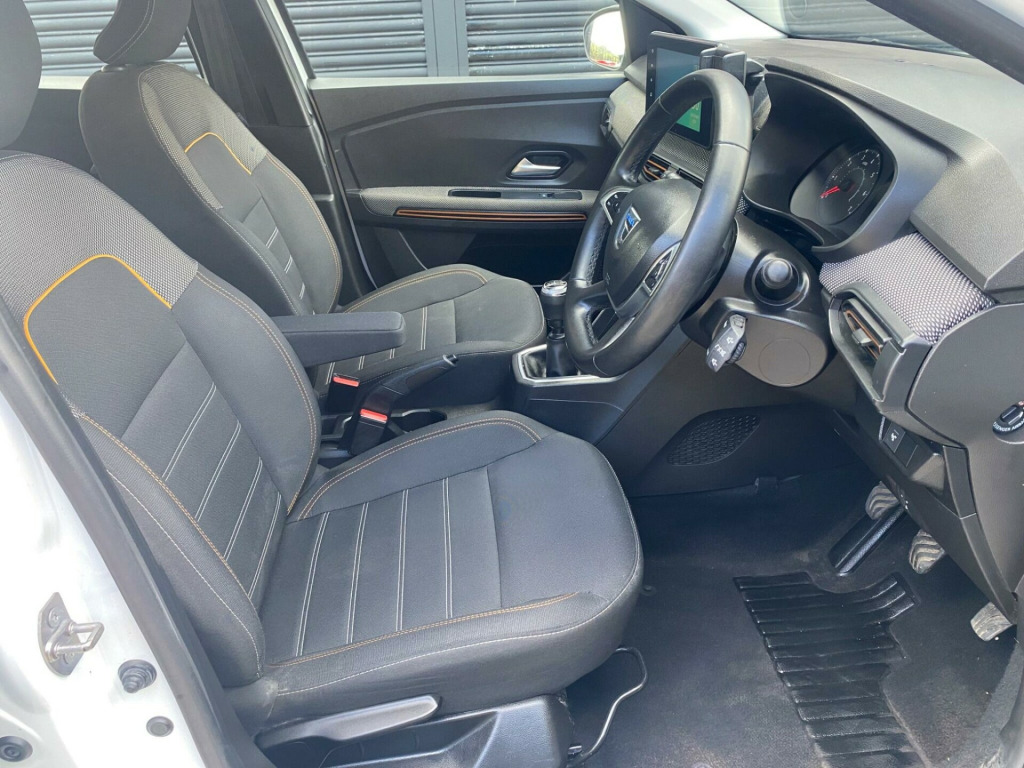 This 2022 Dacia Sandero Stepway TCe Comfort offers exceptional value, boasting a single owner. Under the bonnet, you'll find an efficient 1.0 litre petrol engine that meets Euro 6 emissions standards, making it a sensible choice. The Comfort trim level ensures a well equipped driving experience, featuring an 8 inch MediaNav system with DAB radio, Android Auto, and Apple CarPlay for seamless connectivity. Enjoy the convenience of keyless entry, automatic headlights, and a rear parking camera paired with rear parking sensors to assist you with manoeuvring.The Dacia Sandero Stepway stands out with its practical design and generous boot space, perfect for accommodating your luggage or shopping. Its LED lighting signature not only enhances visibility but also gives the vehicle a modern look. The inclusion of wireless phone charging further adds to the convenience for your everyday journeys. These features collectively demonstrate how this Sandero Stepway provides a superior and more user friendly experience compared to other vehicles in its class. oth - titanium black, 16in steel wheels - flex with full wheel cap, 3-point rear seatbelts x3, 3-speed front windscreen wipers, 6 airbags - front and side driver and passengers including curtain airbags, 8in medianav with dab radio plus, air vents - satin chrome and copper orange, anti-lock braking system - abs and emergency brake assist - eba, automatic central locking, automatic lighting system, automatic wiper, bumpers - front and rear body coloured, central locking - remote, child locks in rear doors, cruise control and speed limiter, deco part on instrument panel and door with textile, door handles - body coloured, door mirrors - body coloured, door mirrors - heated and electrically adjustable, door open - visual warning, driver and passenger vanity mirror with cover, drivers one touch electric windows and rear electric windows, eco mode, esc - electronic stability control, esp - electronic stability programme and hsa - hill start assist, electric power assisted steering, emergency call - e-call, front 12v plug, front fog lights, front seatbelt pretensioners, gear shift indicator, headrests - rear height adjustable x3, heated rear window, height and depth-adjustable steering wheel, height-adjustable drivers seat, height-adjustable front headrests, height-adjustable front seatbelts, high level third brake light, isofix points for child seats in both outer rear seats, interior door handles - satin chrome, keyless entry, led automatic daytime running lights, led lighting signature, longitudinal roof bars - chrome, manual air conditioning, modular roof bars, new 3.5in tft instrument panel with onboard computer, radiator grille - chrome, rear 12v plug, rear parking sensors and rear-view camera, rear washer-wipe, rev counter, seatbelt not fastened - visual and audible warning, smartphone holder on dashboard, soft feel steering wheel, split folding rear bench seat back - 1-3 - 2-3, thatcham approved engine immobiliser, tinted windows, tyre pressure monitor, usb connection for data transfer and charging, usb socket