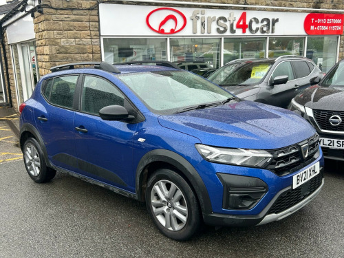 BV21XHL. Dacia built the Sandero Stepway for drivers who want something honest, practical and easy to live with. This Low Mileage, One Owner example brings a Bigger Boot, a raised ride height and a relaxed drive that suits Families, Commuters and Anyone needing extra room without wanting a large SUV.Inside, the layout stays simple and straightforward, with everything close at hand. Manual Air Conditioning keeps the cabin comfortable, and Cruise Control with Speed Limiter helps on longer runs. ECO Mode supports lighter fuel use, while a Front 12 Volt Plug and USB Connection take care of charging and music. Stop Start Technology adds support in town traffic, and the raised seating position gives a clear view of the road for day-to-day driving.Reserve now and book a test drive.This car comes with a Good Service History (2 records), a new 12 month MOT with no advisories, a clear HPI report, two keys, and verified mileage for peace of mind.Finance is available, and we can provide a personalised video on request. Please note that some features (e.g., Navigation/CarPlay) may require an active subscription. Spec details can vary, so just ask if you’d like us to confirm anything.For more info or a finance quote, call ☎️ 0113 257 00 00.. Cruise Control and Speed Limiter, ECO Mode, Emergency Call - E-Call, Front 12v Plug, USB Connection for Data Transfer and Charging, 16in Steel Wheels - Flex with Full Wheel Cap, Door Mirrors - Manually Adjustable, Manual Air Conditioning, Stop/Start, ISOFIX Points for Child Seats in Both Outer Rear Seats, Cloth - Titanium Black.