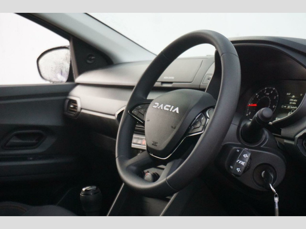 . 16in Steel Wheels - Flex with Full Wheel Cap, 3 Height-Adjustable Rear Headrests, 3-Point Rear Seatbelts x3, 3-Speed Front Windscreen Wipers, 6 Airbags - Front and Side Driver and Passengers including Curtain Airbags, Air Vents - Copper Orange, Anti-lock Braking System - ABS and Emergency Brake Assist - EBA, Automatic Central Locking, Automatic Emergency Braking System - AEBS, Automatic Lighting System, Bumpers - Front and Rear Body Coloured, Central Locking - Remote, Child Locks in Rear Doors, Cruise Control and Speed Limiter, Dacia Inscription on Tail Gate - Chrome, Door Handles - Black, Door Mirrors - Black, Door Mirrors - Manually Adjustable, Door Open - Visual and Audible Warning, Driver and Passenger Seatbelt Not Fastened Warning, ECO Mode, ESC - Electronic Stability Control, ESP - Electronic Stability Programme and HSA - Hill Start Assist, Electric Power-Assisted Steering, Electric Windows - Front, Emergency Call - E-Call, Engine Immobiliser, Fixed Smartphone Holder on Dashboard, Floor Mats, Front 12v Plug, Front Seatbelt Pretensioners, Gear Shift Indicator, Heated Rear Window, Height and Depth-Adjustable Steering Wheel, Height-Adjustable Drivers Seat with Armrest, Height-Adjustable Front Headrests, Height-Adjustable Front Seatbelts, High Level Third Brake Light, ISOFIX Points for Child Seats in Both Outer Rear Seats, Interior Door Handles - Black, LED Automatic Daytime Running Lights, LED Y Shape Dacia Lighting Signature, Longitudinal Roof Bars - Black, Manual Air Conditioning, Manual Windows - Rear, Media Control - DAB Radio with Display on Instrument Panel, New 3.5in TFT Instrument Panel with Onboard Computer, Radiator Grille - Black, Rear Washer-Wipe, Rev Counter, Split Folding Rear Bench Seat Back - 1-3 - 2-3, Tinted Windows, Tyre Pressure Monitor, USB Connection for Data Transfer and Charging, Cloth - Titanium Black, Iron Blue.