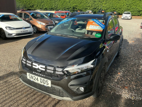 This 2024 Dacia Sandero Stepway TCe Expression is a superb example, having been owned by just one careful keeper since new.  It boasts a responsive 1.0 litre petrol engine, meeting the Euro 6 emission standards, and benefits from an MOT valid until August 2027, offering peace of mind for the foreseeable future.  The Expression trim level comes equipped with practical features designed for everyday convenience, including manual air conditioning to keep you comfortable, and rear parking sensors paired with a reverse camera to assist with manoeuvring.  You'll also appreciate the ease of keyless entry and the distinctive LED lighting signature that enhances visibility.  The Sandero Stepway TCe Expression stands out with its thoughtful combination of features. The inclusion of rear park assist and a rear view camera provides enhanced confidence when parking, a feature that sets it apart from many other vehicles in its class. Combined with the user friendly keyless entry and the bright LED headlights, this Dacia Sandero Stepway offers a well rounded package of comfort, safety, and modern convenience for any driver. 16in Steel Wheels - Flex with Full Wheel, 3 Height-Adjustable Rear Headrests, 3-Point Rear Seatbelts x3, 3-Speed Front Windscreen Wipers, 6 Airbags - Front and Side Driver and Pa, 8in Media Display with DAB Radio, Advanced Emergency Braking System, Air Vent Surrounds - Fog Grey, Air Vents - Copper and White Sliders, Alcohol Immobiliser Predisposition, Anti-lock Braking System - ABS and Emerg, Automatic Central Locking, Automatic Emergency Braking with Pedestr, Automatic Lighting System, Automatic Wiper, Bumpers - Front and Rear Body Coloured, Central Locking - Remote, Child Locks in Rear Doors, Cloth - Titanium Black, Cruise Control and Speed Limiter, Dacia Inscription on Tail Gate - White,