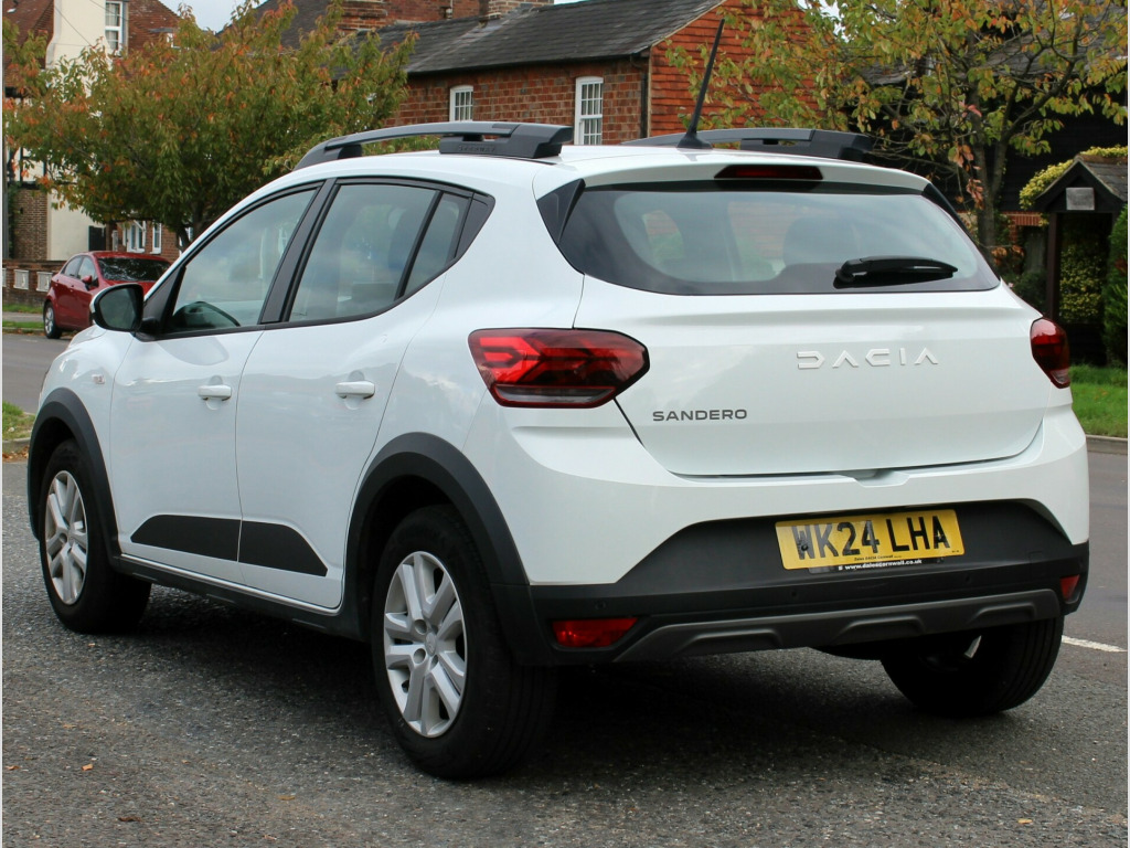Introducing the 2024 Dacia Sandero Stepway 1.0 TCe Expression Hatchback - a sleek and efficient vehicle with only 3500 miles on the clock. This practical hatchback runs on petrol, boasting 5 seats and 5 doors for a spacious and comfortable ride. With its ULEZ compliance, this Dacia ensures environmentally friendly driving in city limits. The exterior of this impressive car comes in a striking Glacier White, complemented by 16in Steel Wheels and body-colored bumpers. The Dacia Inscription on the Chrome Tail Gate adds a touch of sophistication to this stylish vehicle. Inside, the Cloth - Titanium Black is both stylish and functional, creating a luxurious and comfortable driving experience. With its Euro 6 (s/s) engine delivering 90 PS, this Dacia Sandero Stepway is the perfect combination of power and efficiency, making it an ideal choice for any driving enthusiast., OPEN 7 DAYS A WEEK  -  A SELECTION OF UP TO 200 CARS AND VANS AVAILABLE. Click on dealer 'VISIT WEBSITE' link for many more large photographs of this car. We are a West Sussex Trading Standards Approved 'Buy with Confidence Dealership'. in steel wheels - flex with full wheel cap, bumpers - front and rear body coloured, dacia inscription on tail gate - chrome, door handles - body coloured, door mirrors - body coloured, door mirrors - heated and electrically adjustable, drivers one touch electric windows and rear electric windows, heated rear window, modular roof bars - chrome with chrome stepway inscription, radiator grille - chrome, tinted windows, 3 height-adjustable rear headrests, 3-speed front windscreen wipers, air vents - satin chrome and copper orange, automatic central locking, automatic wiper, deco part on instrument panel and door with textile, driver and passenger vanity mirror with cover, fixed smartphone holder on dashboard, floor mats, height and depth-adjustable steering wheel, height-adjustable drivers seat with armrest, height-adjustable front headrests, interior door handles - satin chrome, manual air conditioning, new 3.5in tft instrument panel with onboard computer, rear washer-wipe, soft feel steering wheel, split folding rear bench seat back - 1-3 - 2-3, 3-point rear seatbelts x3, 6 airbags - front and side driver and passengers including curtain airbags, anti-lock braking system - abs and emergency brake assist - eba, automatic emergency braking system - aebs, central locking - remote, child locks in rear doors, driver and passenger seatbelt not fastened warning, esc - electronic stability control, esp - electronic stability programme and hsa - hill start assist, engine immobiliser, front seatbelt pretensioners, height-adjustable front seatbelts, isofix points for child seats in both outer rear seats, keyless entry, 8in media display with dab radio, emergency call - e-call, front 12v plug, rear 12v plug, usb connection for data transfer and charging, automatic lighting system, front fog lights, high level third brake light, led automatic daytime running lights, led y shape dacia lighting signature, cruise control and speed limiter, door open - visual and audible warning, eco mode, electric power-assisted steering, gear shift indicator, rear parking sensors and rear-view camera, rev counter, tyre pressure monitor