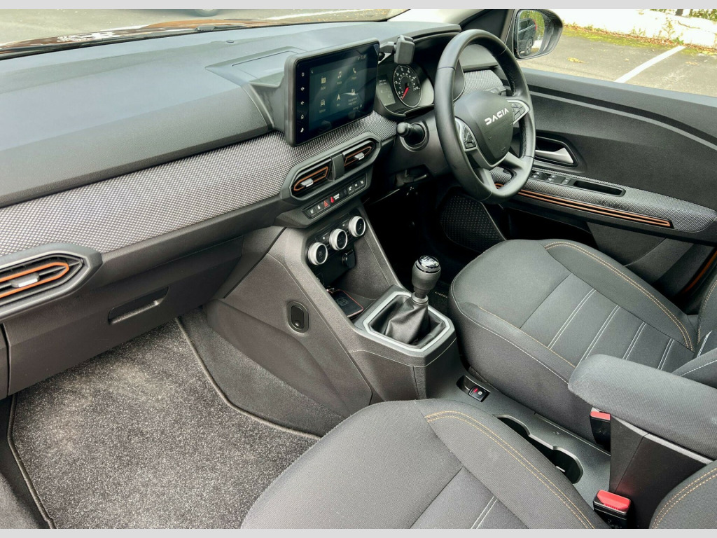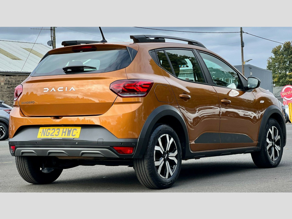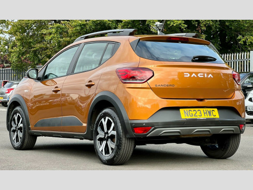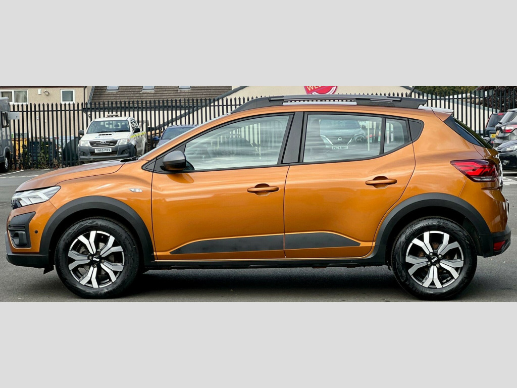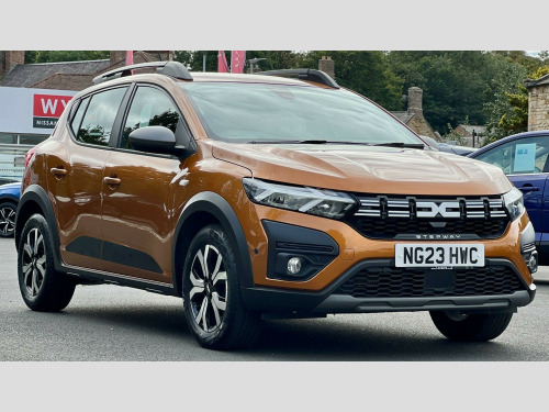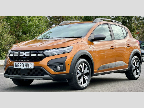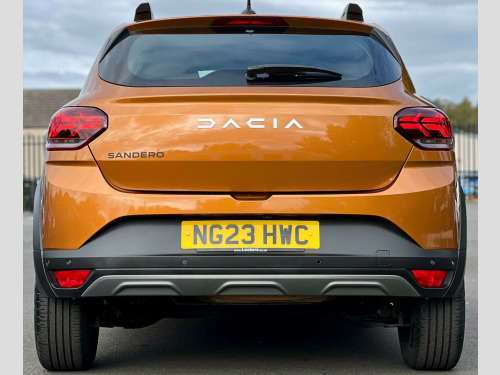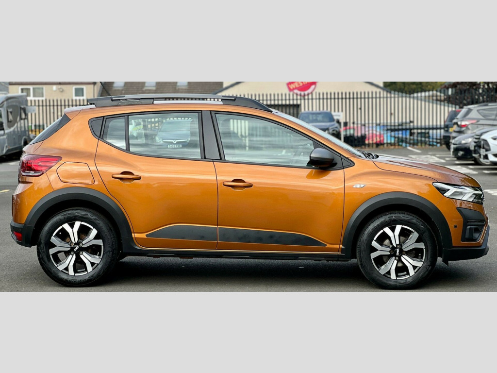 This 2023 Dacia Sandero Stepway TCe Journey is a superb example, having been owned by just one careful owner from new. This Euro 6 compliant 1.0 litre petrol model offers a refined driving experience, enhanced by its Journey trim level. Inside, you'll find an 8 inch MediaNav system complete with DAB radio, Android Auto, and Apple CarPlay, ensuring seamless connectivity. The distinctive LED Y shape Dacia lighting signature, including LED headlights, provides excellent visibility. For comfort, it features automatic air conditioning with climate control, and parking is made effortless with front and rear parking sensors and a rear view camera. Keyless entry adds a touch of modern convenience.The generous boot space in this Sandero Stepway is a standout feature, offering ample room for luggage, shopping, or equipment, making it more practical than many other vehicles in its class. The combination of its fuel efficient 1.0 litre engine, advanced infotainment system, and comprehensive parking assistance technologies positions this Dacia Sandero Stepway TCe Journey as a highly capable and user friendly choice for everyday driving., oth - titanium black, 16in alloy wheels - diamond-effect, 3 height-adjustable rear headrests, 3-point rear seatbelts x3, 3-speed front windscreen wipers, 6 airbags - front and side driver and passengers including curtain airbags, 8in medianav with dab radio, air vents - satin chrome and copper orange, anti-lock braking system - abs and emergency brake assist - eba, automatic air conditioning, automatic central locking, automatic emergency braking system - aebs, automatic lighting system, automatic wiper, blind spot warning, bumpers - front and rear body coloured, central locking - remote, child locks in rear doors, cruise control and speed limiter, deco part on instrument panel and door with textile, door handles - body coloured, door mirrors - body coloured, door mirrors - heated and electrically adjustable, door open - visual and audible warning, driver and passenger seatbelt not fastened warning, driver and passenger vanity mirror with cover, drivers one touch electric windows and rear electric windows, eco mode, esc - electronic stability control, esp - electronic stability programme and hsa - hill start assist, electric power-assisted steering, electronic parking brake, emergency call - e-call, engine immobiliser, fixed smartphone holder on dashboard, front 12v plug, front fog lights, front seatbelt pretensioners, front and rear parking sensors and rear-view camera, gear shift indicator, heated rear window, height and depth-adjustable steering wheel, height-adjustable drivers seat with armrest, height-adjustable front headrests, height-adjustable front seatbelts, high central armrest with console storage, high level third brake light, isofix points for child seats in both outer rear seats, interior door handles - satin chrome, keyless entry, led automatic daytime running lights, led y shape dacia lighting signature, modular roof bars - chrome with chrome stepway inscription, new 3.5in tft instrument panel with onboard computer, radiator grille - chrome, rear 12v plug, rear washer-wipe, rev counter, soft feel steering wheel, split folding rear bench seat back - 1-3 - 2-3, tinted windows, tyre pressure monitor, usb connection for data transfer and charging