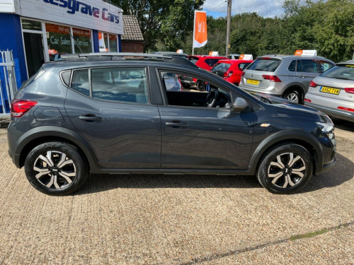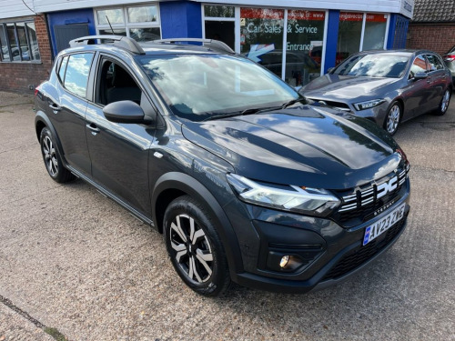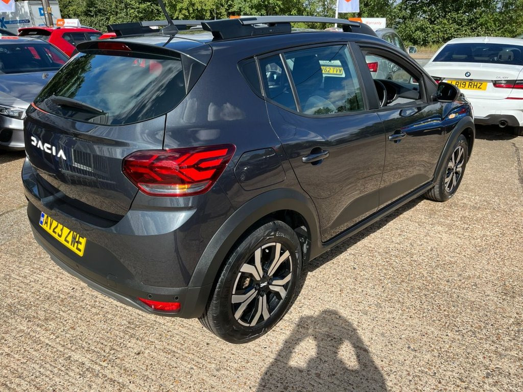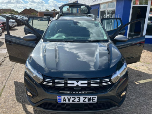 This 2023 Dacia Sandero Stepway TCe Journey stands out with its excellent provenance, having just one owner from new and a full dealership service history, most recently carried out on 20 May 2025 at 11,702 miles. With only 13,045 miles on the clock, this Euro 6 compliant 1.0L petrol model offers peace of mind alongside low running costs. A 12 month MOT will be provided on purchase, and it comes with a 3 month warranty as standard, with the option to extend. Finished in Slate Grey, this Stepway Journey trim is well equipped with features that make everyday driving easier and more enjoyable. Parking is simple thanks to front and rear sensors and a rear view camera, while safety is supported by six airbags, ISOFIX child seat points, automatic emergency braking, electronic stability control and blind spot warning. Convenience is provided with keyless entry, cruise control, automatic air conditioning, and automatic lighting and wipers. The cabin is modern and comfortable, featuring an 8 inch MediaNav system with DAB radio, Bluetooth, USB, Android Auto and Apple CarPlay. There is also a fixed smartphone holder, soft feel steering wheel, and a high central armrest with storage. The interior is complemented by copper orange accents and cloth trim in Titanium Black. Externally, the car benefits from 16 inch diamond effect alloy wheels, modular chrome roof bars with Stepway inscription, body coloured bumpers and LED Y shape Dacia signature lighting, giving it a distinctive and styli 16in Alloy Wheels - Diamond-Effect, 3 Height-Adjustable Rear Headrests, 3-Point Rear Seatbelts x3, 3-Speed Front Windscreen Wipers, 6 Airbags - Front and Side Driver and Pa, 8in MediaNav with DAB Radio, Air Vents - Satin Chrome and Copper Oran, Anti-lock Braking System - ABS and Emerg, Automatic Air Conditioning, Automatic Central Locking, Automatic Emergency Braking System - AEB, Automatic Lighting System, Automatic Wiper, Blind Spot Warning, Bumpers - Front and Rear Body Coloured, Central Locking - Remote, Child Locks in Rear Doors, Cruise Control and Speed Limiter, Deco Part on Instrument Panel and Door w, Door Handles - Body Coloured, Door Mirrors - Body Coloured, Door Mirrors - Heated a