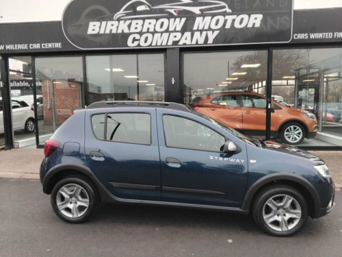AVAILABLE AT OUR MARSKE SITE, 105 REDCAR ROAD, MARSKE TS11 6HU BIRKBROW MOTOR COMPANY AT MARSKE IS DELIGHTED TO OFFER THIS BEAUTIFULLY PRESENTED 2017/17 PLATE DACIA SANDERO STEPWAY 1.5 DCI DIESEL AMBIANCE 5 DOOR SUV IN COSMOS BLUE METALLIC WITH ONLY 12,128 MILES COVERED FROM NEW, SPEC INCLUDES FRONT FOG LIGHTS, LED DAYTIME RUNNING LIGHTS, FRONT ELECTRIC WINDOWS, REMOTE CENTRAL LOCKING, AIR CONDITIONING, DAB DIGITAL RADIO WITH BLUETOOTH, USB AND AUX CONNECTIONS, ROOF BARS, TINTED GLASS, FANTASTIC ECONOMY WITH 74.3 MPG, ONLY £20 A YEAR ROAD TAX, HIGHER SEATING POSITION FOR EASY ACCESS, SPACIOUS BOOT, IDEAL FAMILY HATCHBACK, VERY HARD TO FIND IN THIS CONDITION WITH VERY LOW MILEAGE, FINANCE ARRANGED 12V Power Socket, 12V Socket for Rear Passengers, AUX Input, Bluetooth Connectivity, DAB-FM-AM Radio, USB Connection for MP3 Players, 16in Steel Wheels - Stepway Design, Bumpers - Front and Rear Body Coloured, Chrome Front Grille, Door Handles - Black, Door Mirrors - Manually Adjustable, Door Mirrors - Metal Grey, Electric Windows - Front, Fog Lamp Embellisher - Satin Chrome, Heated Rear Window, Manual Windows - Rear, Roof Bars - Satin Chrome, Side Sills - Black, Skid Plates - Front and Rear - Satin Chr, Stepway Logo on Front Door Panel, Tinted Windows, Tyre Inflation Kit, Wheelarch Extensions, 3-Speed Front Windscreen Wipers, Air Recirculation - 4-speed Heating and , Air Vents - Satin Chrom