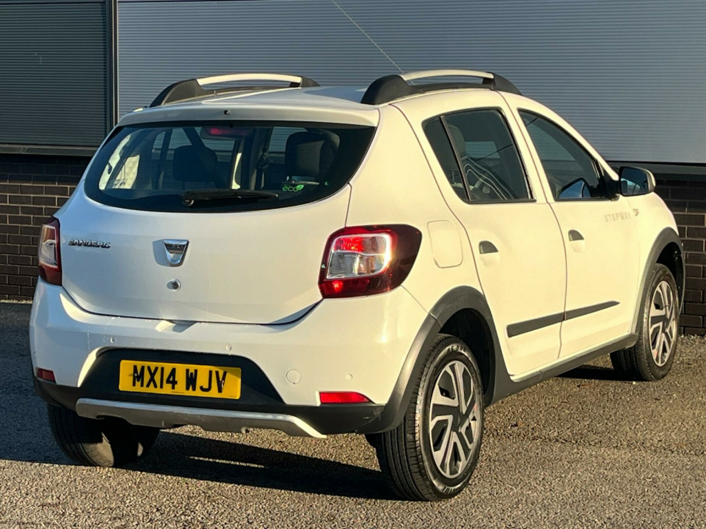 Part-ex bargain, just had oil and filter service, Category C repaired back in 2016, drives really well, low road tax, excellent fuel consumption. Bad bits - radio unit not working and rear electric windows.This 2014 Dacia Sandero Stepway dCi Laureate presents a remarkable opportunity with its exceptionally low mileage of just 67,000 miles for a vehicle of its age. As a dCi Laureate model, it boasts a reliable 1.5L diesel engine, offering an impressive fuel economy of 71 mpg, making it an economical choice for everyday driving. This Sandero Stepway comes equipped with practical features designed for convenience, including rear parking sensors to aid with manoeuvring and a radio system with 24 AM-FM presets, enhanced by Arkamys branded sound for your listening pleasure. Stay connected on the go with Bluetooth connectivity for streaming audio, and enjoy a comfortable cabin environment thanks to the manual air conditioning.The benefits of choosing this Dacia Sandero Stepway extend beyond its initial appeal. Its low insurance group rating indicates that running costs will be kept to a minimum, a significant advantage compared to many other vehicles. Furthermore, the generous boot space provides ample room for shopping, luggage, or equipment, proving its versatility. The low CO2 emissions highlight its environmental consideration, contributing to lower road tax. These combined highlights demonstrate how this Sandero Stepway offers a compelling package of efficiency, practicality, and affordability.. 12V Power Socket, 16in Alloy Look Wheels - Stepway, ABS - Anti-lock Braking System, ASR - Traction Control, Air Recirculation - 4-speed Heating and Ventilation, Air Vents - Chrome Surrounds, Airbags - Driver, Airbags - Front Passenger, Airbags - Front Passenger Deactivation, Airbags - Front Side, Anti-intruder Automatic Door-locking System, Bluetooth Connectivity for Streaming Audio, Bumpers - Front and Rear Body Coloured, Central Locking - Remote, Centre Console Surround - Graphite, Child Locks in Rear Doors, Chrome Front Grille, Chrome Heating Control Inserts, Cruise Control and Speed Limiter, DRL - Daytime Running Lights, Door Handles - Front Graphite, Door Mirrors - Body Coloured, Door Mirrors - Heated and Electrically Adjustable, Door Open - Visual Warning, Driver and Front Passenger Seat Belt Unfastened - Visual and Audible Warning, EBA - Emergency Brake Assist, ECO Mode, ESC - Electronic Stability Control, Electric Windows - Front and Rear, Front Courtesy Light, Front Fog Light - Satin Chrome Surrounds, Front Passenger Grab Handle, Front Passenger Reading Light, Glovebox Light, Grab Handles - Rear Passenger with Coat Hook, Headlights - Single Optic with Chrome Surrounds, Headlights Left On - Audible and Visual Warning, Headrests - Rear Height Adjustable x3, Heated Rear Window, Height-Adjustable Drivers Seat, Height-Adjustable Front Headrests, Height-Adjustable Steering Wheel, High Level Third Brake Light, ISOFIX Points for Child Seats in Both Outer Rear Seats, Instrument Dial Surrounds - Chrome, Luggage Compartment - Light, Manual Air Conditioning, Map Pockets on Front Seatbacks, Power Assisted Steering, Radio with 24 AM-FM Presets and Sound by Arkamys, Raised Ride Height, Rear Parking Sensors, Roof Bars - Satin Chrome, Satellite Navigation - MediaNav 7in Touchscreen Multimedia System, Satellite Navigation - UK and Ireland Mapping, Scuff Plates - Front and Rear - Satin Chrome, Seats - 60-40 Split Folding Rear, Side Sills - Black, Speakers - x2 - Front, Steering Column Mounted Fingertip Controls, Steering Wheel - Chrome Logo Surround, Steering Wheel - Graphite Lower Insert, Steering Wheel - Leather and Gear Knob, Stepway Logo on Front Door Panel, Sunvisor with Vanity Mirror - Passenger, Thatcham Approved Engine Immobiliser, Tinted Windows, Trip Computer - 7 Function, Tyre Inflation Kit, USB and AUX Connection Points. Part service history