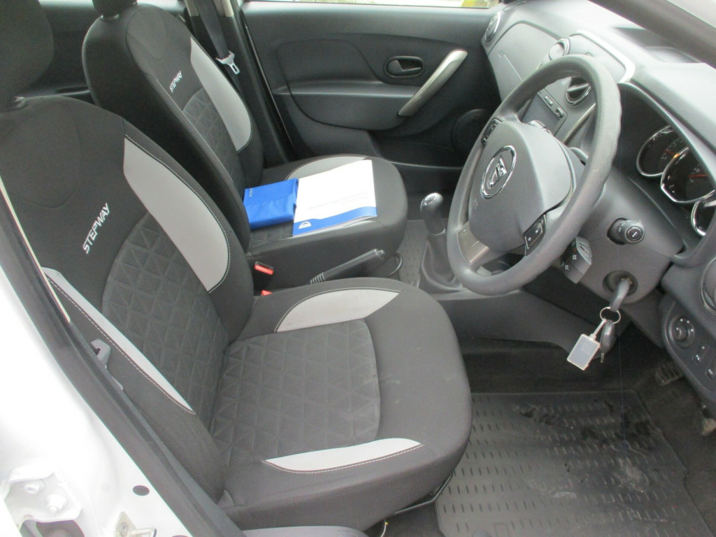 This 2015 Dacia Sandero Stepway 1.5 dCi Laureate Hatchback with a Diesel engine and manual transmission has only covered 48000 miles and comes in ULEZ compliant Glacier White. With 5 doors and 5 seats, this hatchback includes a 7in Touchscreen Multimedia System and a Comfort Pack, as well as a 12V Power Socket. It also features an Emergency Spare Wheel and is equipped with the Euro 6 (s/s) (90 ps) engine. The MOT is valid until 29/09/2026, making it an ideal choice for those seeking a reliable and economical vehicle. v power socket, 7in touchscreen multimedia system, aux input, bluetooth connectivity, radio with 24 am-fm presets and sound by arkamys, satellite navigation - medianav 7in touchscreen multimedia system, speakers - x2 - front, speakers - x2 - rear, usb connection for mp3 players, 16in steel wheels - stepway design, bumpers - front and rear upper section - body coloured, chrome front grille, door handles - black, door mirrors - body coloured, door mirrors - heated and electrically adjustable, electric windows - front, roof bars - satin chrome, scuff plates - front and rear - satin chrome, side sills - black, steering wheel - chrome logo surround, stepway logo on front door panel, tinted windows, tyre inflation kit, wheelarch extensions - black, abs - anti-lock braking system, asr - traction control, airbags - driver, airbags - front passenger, airbags - front passenger deactivation, airbags - front side, anti-intruder automatic door-locking system, central locking - remote, child locks in rear doors, driver and front passenger seat belt unfastened - visual and audible warning, eba - emergency brake assist, esc - electronic stability control, isofix points for child seats in both outer rear seats, steering wheel - graphite lower insert, thatcham approved engine immobiliser, air recirculation - 4-speed heating and ventilation, air vents - chrome surrounds, central console surround - graphite, chrome heating control inserts, door handles - interior front - graphite, door handles - interior rear - black, door panels - dark carbon, front courtesy light, gear knob - leather, headrests - rear height adjustable x3, height-adjustable drivers seat, height-adjustable front headrests, height-adjustable steering wheel, instrument dial surrounds - chrome, luggage compartment - light, manual air conditioning, map pockets on front seatbacks, rear passenger grab handles, seats - 60-40 split folding rear, steering column mounted fingertip controls, sunvisor with vanity mirror - passenger, cruise control and speed limiter, door open - visual warning, eco mode, gear shift indicator, outside temperature gauge, power assisted steering, raised ride height, rear parking sensors, trip computer - 7 function, tyre pressure monitor, drl - daytime running lights, front fog light - satin chrome surrounds, headlights - single optic with chrome surrounds, headlights left on - audible and visual warning, high level third brake light