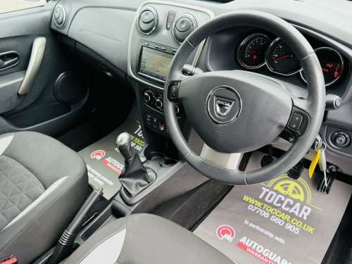 We are pleased to offer this Dacia Sandero Stepway 1.5 dCi Laureate Hatchback 5dr 90 ps in Azurite Blue . This car is in excellent condition both inside and out. Annual road tax is only £20. The specification includes :- Satellite Navigation, Air Conditioning, Bluetooth, Radio, Rear Parking Sensors, Cruise Control, Front Electric Windows and Remote Central Locking. The car comes with an MOT (no advisories) and has been serviced by an approved service centre. For further peace of mind Autoguard nationwide warranties are available to purchase. Part exchange welcome. Viewings are by appointment please. Finance available. Please see our wide selection of used vehicles at www.toccar.co.uk 12V Power Socket, 7in Touchscreen Multimedia System, AUX Input, Bluetooth Connectivity, Radio with 24 AM-FM Presets and Sound by, Satellite Navigation - MediaNav 7in Touc, Speakers - x2 - Front, Speakers - x2 - Rear, USB Connection for MP3 Players, 16in Steel Wheels - Stepway Design, Bumpers - Front and Rear Upper Section -, Chrome Front Grille, Door Handles - Black, Door Mirrors - Body Coloured, Door Mirrors - Heated and Electrically A, Electric Windows - Front, Roof Bars - Satin Chrome, Scuff Plates - Front and Rear - Satin Ch, Side Sills - Black, Steering Wheel - Chrome Logo Surround, Stepway Logo on Front Door Panel, Tinted Windows, Tyre Inflation Kit, Wheelarch Extensions - Black, Air R