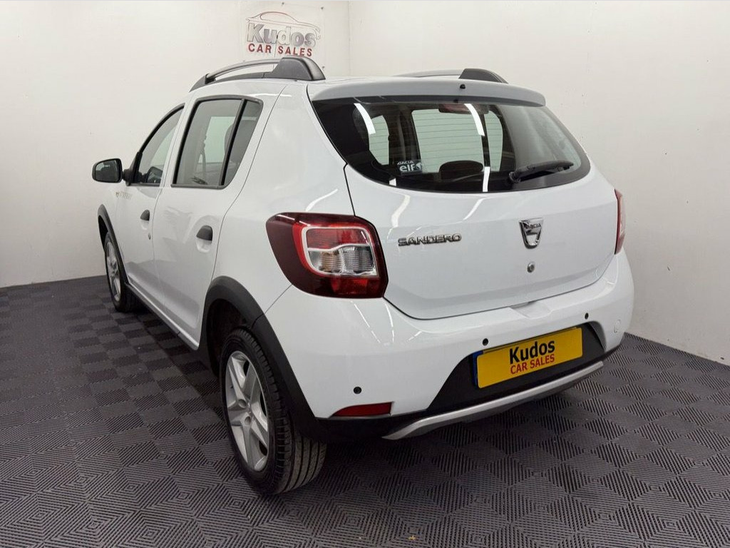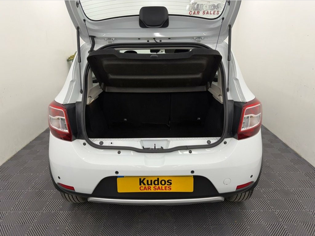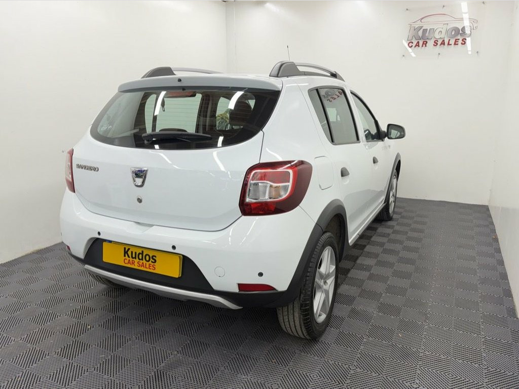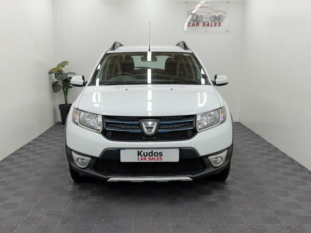 2014 DACIA SANDERO STEPWAY 1.5 dCi Laureate 5dr - GREAT CAR TO DRIVE, FINISHED IN GLACIER WHITE. NO DEPOSIT FINANCE AVAILABLE FROM ONLY £104 per mth. 6 MONTH WARRANTY INCLUDED. EACH VEHICLE COMES WITH A FREE HPI CLEAR REPORT AND AA BREAKDOWN COVER. FULL SERVICE HISTORY AND JUST HAD A SERVICE. **ONLY £20 ROAD TAX** JUST 2 OWNERS AND 0NLY 60600 MILES. MOT UNTIL 01/11/2026. GREAT SPEC: REAR PARKING SENSORS, CRUISE CONTROL, TOUCH SCREEN RADIO, SAT NAV, AIRCON, ECO MODE, RADIO CD, MEDIA CONNECTIVITY, BLUETOOTH, ELEC WINDOWS, FINANCE PACKAGES - With a number of lenders on board i am able to offer Finance to suit individual circumstances, including Sub Prime. All CARS ARE HPI CHECKED AND CLEAR. WARRANTY. At KUDOS CAR SALES every vehicle comes with a FREE 6 MONTH Warranty. Any repairs under warranty can be carried out at your local garage - Extended warranty available on request at extra cost. ***ALL PART EXCHANGE'S CONSIDERED*** *OPEN 7 DAYS* SEE WEBSITE FOR DETAILS* visit our website or facebook shop for walkround videos 12V Power Socket, 16in Steel Wheels - Stepway Design, 7in Touchscreen Multimedia System, ABS - Anti-lock Braking System, Air Recirculation - 4-speed Heating and , Air Vents - Chrome Surrounds, Airbags - Driver, Airbags - Front Passenger, Airbags - Front Passenger Deactivation, Airbags - Front Side, Anti-intruder Automatic Door-locking Sys, ASR - Traction Control, AUX Input, Bluetooth Connectivity, Bumpers - Front and Rear Upper Section -, Central Locking - Remote, Centre Console Surround - Graphite, Child Locks in Rear Doors, Chrome Front Grille, Chrome Heating Control Inserts, Cruise Control and Speed Limiter, Door Handles - Black, Door Handles - Interior Front - Graphite, Door Handles - In