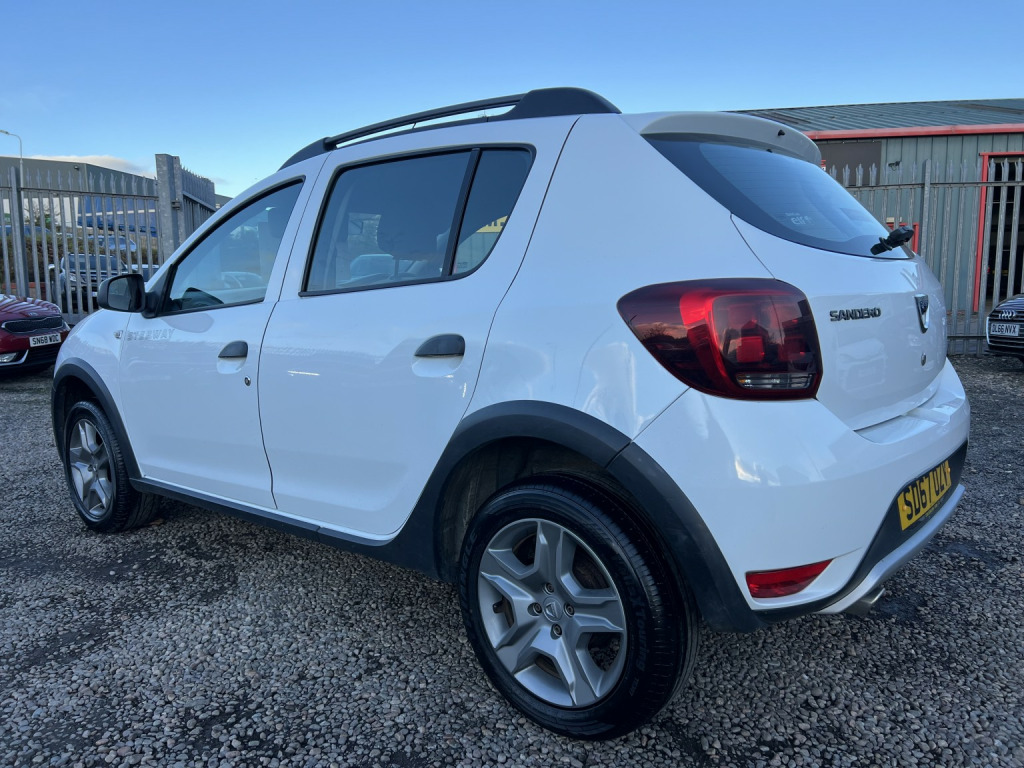 ????2017 67 DACIA SANDERO STEPWAY 1.5 dCi DIESEL Ambiance 5dr/71,000 MILES F/S/H/£5,495, GREAT EXAMPLE IN ALPINE WHITE WITH FULL SERVICE HISTORY AND 2 X KEYS/, 3rd brake light, Anti-lock Brake System (ABS), Electronic Stability Program (ESP), One touch indicator, Power assisted brakes, Tyre pressure monitor, Hands-free Bluetooth system, Telephone, Voice control for telephone, Check control system, Configurable dashboard display, Keyless go, Service interval indicator, Steering wheel audio controls, Tool kit, Travel data recorder, Trip computer, Performance mode select, Power Assisted Steering, Rev counter, Start/Stop system, Traction control, Digital radio, Radio/CD, USB input, Body coloured bumpers, Rear boot, Roof rails, Daytime running lights, Door mirror indicators, Front fog lights, LED daytime running lights, Air conditioning, Front centre armrest, Front head restraints, Front interior 12V power outlet, Rear headrests, Steering wheel manually adjustable,Steering wheel rake adjustment, Steering wheel reach adjustment, Leather gear selector trim, Leather interior door trim, Leather steering wheel, Electric door mirrors, Metallic Paint, Rear parking sensor, 3x3 point rear/Active front head restraints, Drivers airbag, Isofix child seat anchor points, Manual child proof locks, Passenger airbag, Rear centre headrest, Height adjustable drivers seat, Lumbar support, Alarm, Central locking, Immobiliser, Remote central locking/Alloy wheels, Front electric windows, Rear wiper/71,000 miles f/s/h/comes with 12 month mot and full engine service/6 months warranty/finance available,delivery can be arranged/buy with confidence,read our 5star reviews,ms car sales Cupar ky154rd
