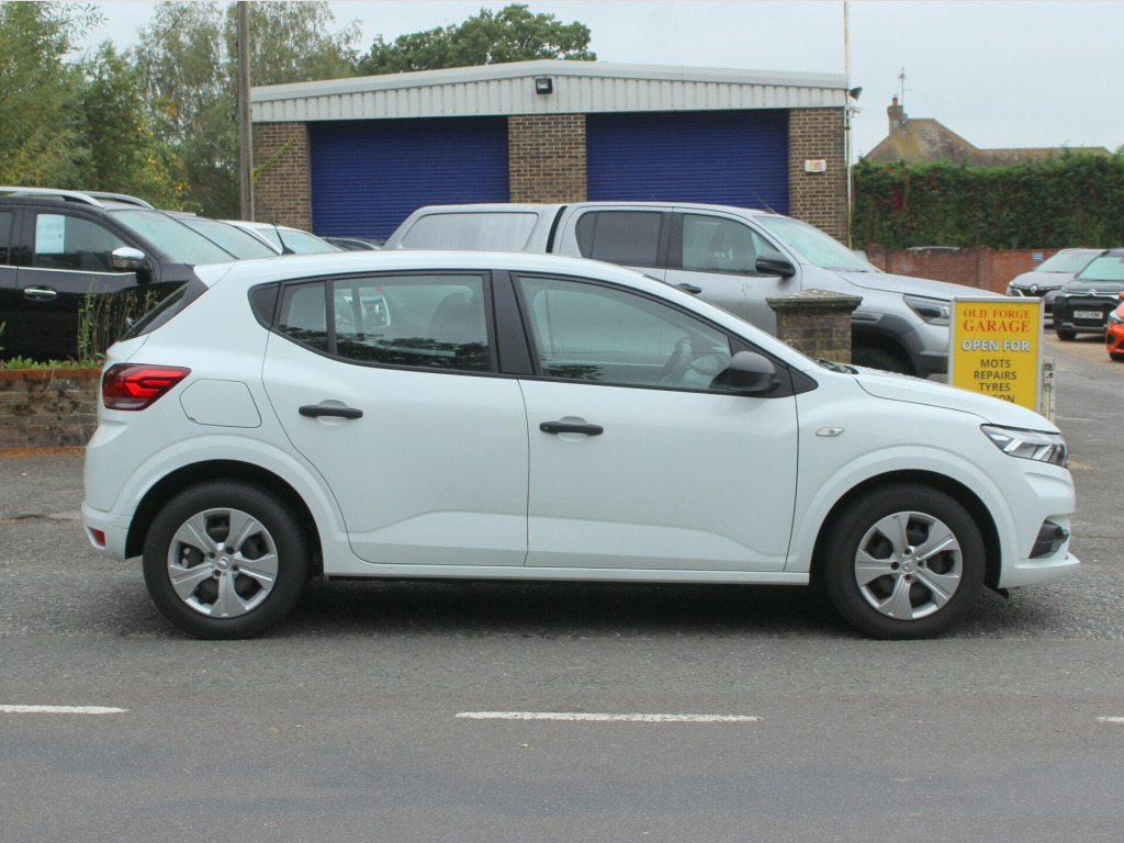 This 2021 Dacia Sandero 1.0 TCe Essential Hatchback in Glacier White boasts a mere 16600 miles on its petrol engine, with MOT valid till 20/07/2026. This 5-door, 5-seater hatchback is ULEZ compliant and comes equipped with 15in Steel Wheels, Black Door Mirrors, and Front and Rear Body Coloured Bumpers. The interior features Cloth in Titanium Black, making for a comfortable and stylish ride. With a manual transmission and Euro 6 (s/s) 90 ps engine, this Dacia Sandero offers a smooth and efficient drive., OPEN 7 DAYS A WEEK - A SELECTION OF UP TO 200 CARS AND VANS AVAILABLE. Click on dealer 'VISIT WEBSITE' link for many more large photographs of this car. We are a West Sussex Trading Standards Approved 'Buy with Confidence Dealership'. in steel wheels, black door mirrors, bumpers - front and rear body coloured, door handles - black, door mirrors - manually adjustable, electric windows - front, heated rear window, manual windows - rear, radiator grille - black, tinted windows, 3-point rear seatbelts x3, 6 airbags - front and side driver and passengers including curtain airbags, anti-lock braking system - abs and emergency brake assist - eba, automatic emergency braking system - aebs, central locking - remote, child locks in rear doors, driver and passenger seatbelt not fastened warning, esc - electronic stability control, esp - electronic stability control plus hill start assist - hsa, engine immobiliser, front seatbelt pretensioners, height-adjustable front seatbelts, isofix points for child seats in both outer rear seats, 3-speed front windscreen wipers, air vents - satin chrome, automatic central locking, headrests - rear height adjustable x3, height and depth-adjustable steering wheel, height-adjustable drivers seat, height-adjustable front headrests, interior door handles - black, manual air conditioning, new 3.5in tft instrument panel with onboard computer, rear washer-wipe, smartphone holder on dashboard, split folding rear bench seat back - 1-3 - 2-3, automatic lighting system, high level third brake light, led automatic daytime running lights, led y shape dacia lighting signature, cruise control and speed limiter, door open - visual and audible warning, eco mode, electric power-assisted steering, gear shift indicator, rev counter, tyre pressure monitor, emergency call - e-call, front 12v plug, media control - dab radio with display on instrument panel, usb connection for data transfer and charging, usb socket