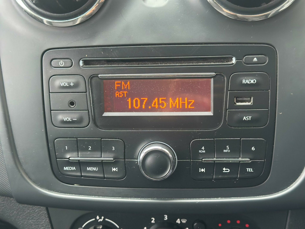 This 2015 Dacia Sandero Ambiance offers excellent value, making it a smart choice for budget conscious buyers. Powered by a reliable 1.2 litre petrol engine, this Euro 6 compliant model is designed for efficiency. Inside, you'll find Bluetooth connectivity, allowing for seamless integration of your phone for calls and music.The Dacia Sandero Ambiance stands out with its remarkably low insurance group, which can help keep your running costs down. You'll also appreciate the generous boot space, perfect for shopping trips or luggage. For those who enjoy a responsive drive, this Sandero accelerates from 0 to 62 miles per hour in just 10.4 seconds, demonstrating its capability compared to other vehicles in its class.. 12V Power Socket, 15in Steel Wheels - Colorado, ABS - Anti-lock Braking System, ASR - Traction Control, AUX Input, Air Recirculation - 4-speed Heating and Ventilation, Air Vents - Chrome Surrounds, Airbags - Driver, Airbags - Front Passenger, Airbags - Front Passenger Deactivation, Airbags - Front Side, Anti-intruder Automatic Door-locking System, Black Door Mirrors, Bluetooth Connectivity, Bumpers - Front and Rear Body Coloured, Central Console Surround - Black, Central Locking - Remote, Child Locks in Rear Doors, DRL - Daytime Running Lights, Door Handles - Black, Door Handles - Interior Front - Black, Door Handles - Interior Rear - Black, Door Open - Visual Warning, Door Panels - Two-Tone Dark Carbon-Light Grey, Driver and Front Passenger Seat Belt Unfastened - Visual and Audible Warning, EBA - Emergency Brake Assist, EBD - Electronic Brakeforce Distribution, ESC - Electronic Stability Control, Electric Windows - Front, Fog Lamp Embellisher - Black, Front Bumper Grid, Front Courtesy Light, Gear Shift Indicator, Headlights - Single Optic with Chrome Surrounds, Headlights Left On - Audible and Visual Warning, Headrests - Rear Height Adjustable x3, Height-Adjustable Front Headrests, High Level Third Brake Light, ISOFIX Points for Child Seats in Both Outer Rear Seats, Instrument Dial Surrounds - Black, Luggage Compartment - Light, Power Assisted Steering, Radio with CD Player including MP3 CD Reader with Fingertip Controls, Rear Passenger Grab Handles, Seats - 60-40 Split Folding Rear, Speakers - x2 - Front, Steering Wheel - Chrome Logo Surround, Sunvisor with Vanity Mirror - Passenger, Thatcham Approved Engine Immobiliser, Tinted Windows, Tyre Inflation Kit, Tyre Pressure Monitor, USB Connection for MP3 Players, Emergency Spare Wheel. Full service history
