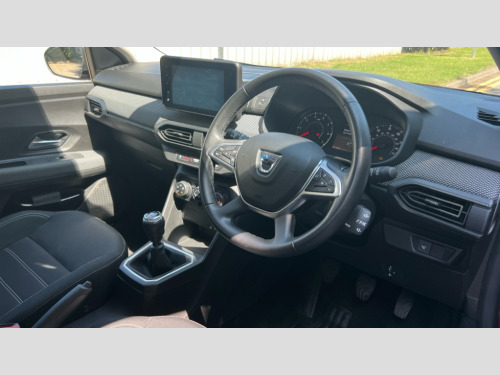 Dacia Sandero 1.0 TCe Comfort 5dr 3.5" TFT instrument panel with on-board computer, Cruise control with speed limiter, eCall emergency call system, Eco mode, Electric power assisted steering, Rear parking sensors, Rev counter, Reversing camera, Stop/start system, 8" Media display - DAB radio, smartphone replication, bluetooth, 4 speakers, Apple CarPlay and Android Auto, Pre-wiring for radio and speakers, USB connection for data transfer and charging, USB socket, 3 speed windscreen wipers, Auto lighting, Automatic wipers, Black radiator grille, Body colour door handles, Body colour door mirrors, Body coloured bumpers, Electrically adjustable and heated door mirrors, Front fog lights, Heated rear window, High level third brake light, LED automatic daytime running lights, LED Y shape Dacia signature lighting, One touch electric front windows, Rain sensor, Rear electric windows, Rear side wing doors, Rear wash/wipe, Tinted windows, 1/3 to 2/3 split folding rear seats, 12 volt front socket, 12 volt rear socket, 3 height adjustable rear headrests, 3 seat rear bench, Double satin chrome air vents, Driver + passenger vanity mirrors, Fabric upholstery, Fixed smartphone holder on dashboard, Front armrest, Gear shift indicator, Height adjustable driver seat, Height adjustable front headrests, Height/depth adjustable steering wheel, Isofix points for child seats in both outer rear seats, Manual air conditioning, Satin chrome interior door handles, Single front passenger seat, Soft feel steering wheel, Steering wheel controls, 3x3 point rear seatbelts, ABS and Emergency brake assist, Automatic emergency braking system, Child locks on rear doors, Door open warning, Driver airbag, ESC (Electronic Stability Control), ESP (Electronic Stability Program) + Hill Start Assist, Front curtain airbags, Front seatbelt pretensioners, Front side airbags, Height adjustable front seatbelts, Passenger airbag, Seatbelt reminder for driver and front passenger, Tyre pressure monitor, Automatic central locking, Immobiliser, Keyless entry, Remote central locking, Decopart on instrument panel and door with textile, 15" Flex wheels with full wheel cap