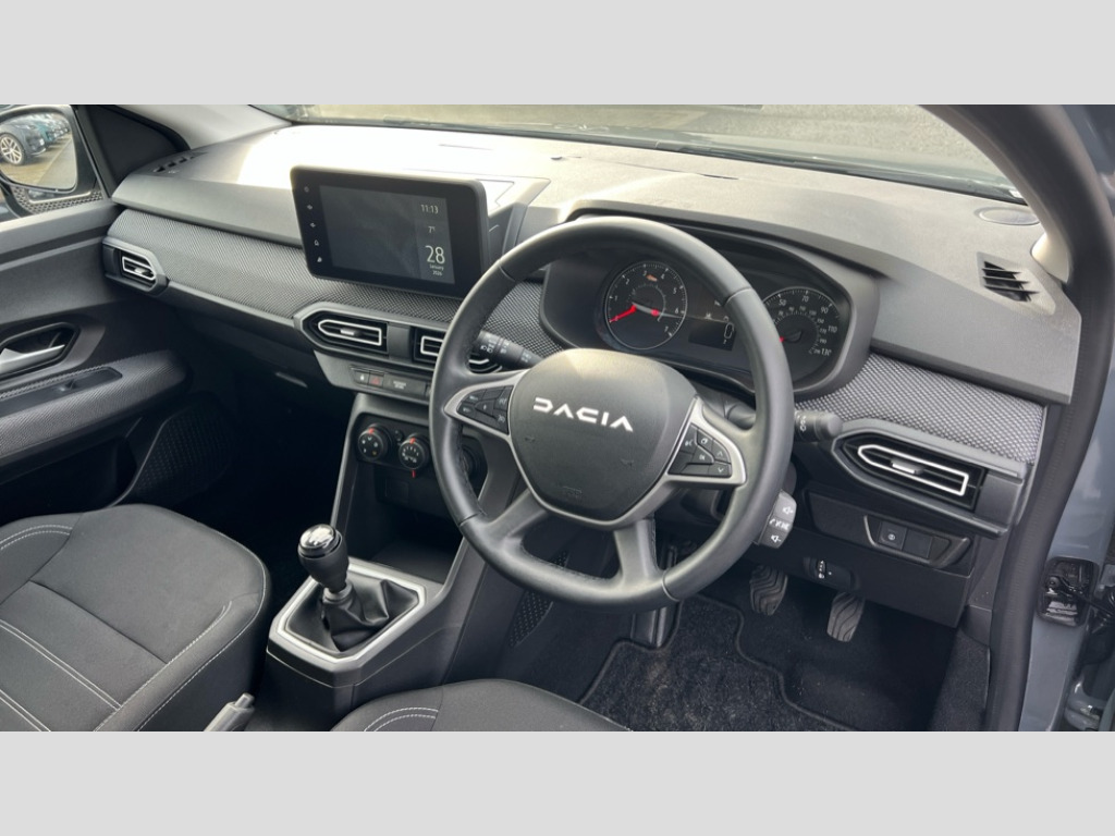 Dacia Sandero 1.0 Tce Expression 5dr 3.5" TFT instrument panel with on-board computer, Cruise control with speed limiter, Driver attention warning, eCall emergency call system, Eco mode, Electric power assisted steering, Emergency Stop Signal (ESS), Event data recoder, Lane departure warning, Lane keep assist, Rear parking sensors, Rescue code, Rev counter, Reversing camera, Speed limiter with audibe warning, Stop/start system, Traffic sign recognition with speed alert/Intelligent speed assist (ISA), 8" Media display - DAB radio, smartphone replication, bluetooth, 4 speakers, Apple CarPlay and Android Auto, Pre-wiring for radio and speakers, USB connection for data transfer and charging, USB socket, USB-C plug, 3 speed windscreen wipers, Auto lighting, Automatic wipers, Black radiator grille, Body colour door handles, Body colour door mirrors, Drivers one touch electric windows, Electrically adjustable and heated door mirrors, Front and rear body coloured bumpers, Front electric windows, Front fog lights, Heated rear window, High level third brake light, LED automatic daytime running lights, LED Y shape Dacia signature lighting, Rear electric windows, Rear side wing doors, Rear wash/wipe, Tinted windows, 1/3 to 2/3 split folding rear seats, 12 volt front socket, 12 volt rear socket, 3 height adjustable rear headrests, 3 seat rear bench, Black titane door panels, Carpet mats, Driver and passenger vanity mirror with cover, Fabric upholstery, Fixed smartphone holder on dashboard, Fog grey air vents, Fog grey interior door handles, Front ceiling light, Gear shift indicator, Height adjustable drivers seat with armrest, Height adjustable front headrests, Height/depth adjustable steering wheel, Isofix points for child seats in both outer rear seats, Manual air conditioning, Single front passenger seat, Soft feel steering wheel, Steering wheel controls, 3x3 point rear seatbelts, 6 airbags - Driver, front passenger, curtain and side airbags, ABS and Emergency brake assist, Advanced emergency braking system, Alcohol imoboliser predisposal, Automatic emergency braking system, Child locks on rear doors, Door open visual and audible warning, EBD - Electronic brakeforce distribution, ESC (Electronic Stability Control), ESP (Electronic Stability Program) + Hill Start Assist, Front seatbelt pretensioners, Height adjustable front seatbelts, Seatbelt reminder for driver and front passenger, Side impact protection, Tyre pressure monitor, Automatic central locking, Engine immobiliser, Keyless entry, Remote central locking, Decopart on instrument panel and door with textile, 16" Flex wheels Atara