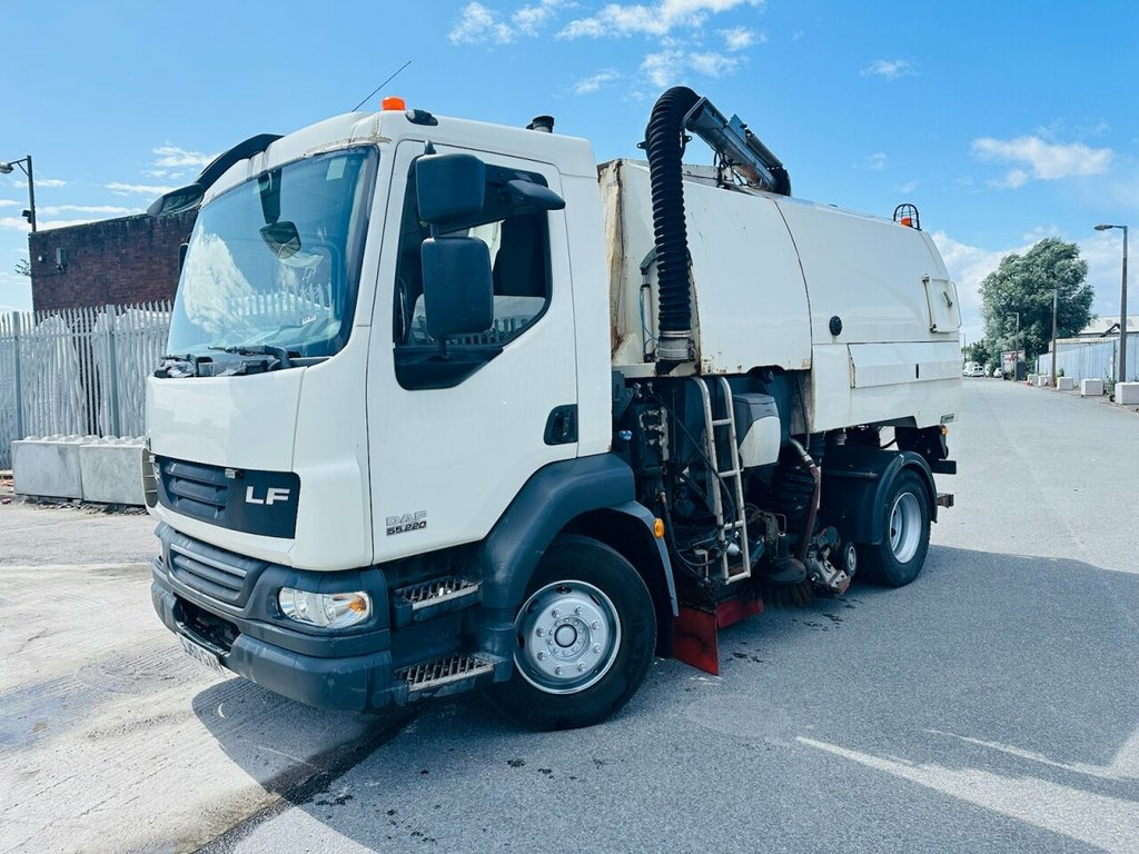 Here we have a fantastic low mileage February 2011 DAF FA LF55.220 6.7 15T 4X2 SLP E4 Johnson VT650 Road Sweeper in white. This vehicle has come direct from lease with the same company since new so shows 0 former keepers on the V5. The vehicle and machine are in full working order and will of been regularly maintained and serviced through the vehicles lease plan This is a very tidy example throughout and has a low mileage of just 115k miles or 185454kms. The vehicle is ULEZ COMPLIANT making it ideal for working in major cities The Road sweeper comes with power steering, electric windows, tilt/tip body, Dual & Simultaneous Sweep, HIGH PRESSURE WATER JET WASH LOW PRESSURE WATER SUPPRESSION ROOF MOUNTED SUCTION WONDER HOSE, all digital controls and remotes present, full manual for operating machine. The Truck is ready to go to work, part exchange is welcome and we can arrange asset/commercial finance on this vehicle for you! get in touch today!