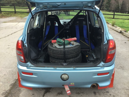 As an approved dealer all our vehicles are supplied fully prepared and serviced , , This is a wee car we purchased a couple of years ago to do some local Targa & Navigation Rallies with a pal for some fun, we Rallied a Harry Hockley Daihatsu previously on Gravel & Tarmac, they were fantastic cars to use & ultra tough so when I saw this rather rare Daihatsu Sirion Rally 2, it was the one !!!, , Build & Competed successfully in Wales for many years, weve had it for around 2 years, , So Our own Trusty Navigational / Targa / Road Rally Car, , Just successfully completed the 2023 Saltire Classic Rally, Finishing 7th Overall & 1st in Class + many local road rallys , , Genuine 45,018 miles, , Supplied with recent 12mths MOT & Service , , Ready for any keen drivers to get started or just cheap Rallying, , Extremely reliable & economical, comes with boxes of spares & panels ( just in case ???? ), , Spec inc:, , Corbeau Forza Competition Seats on adjustable alloy brackets ✅, , TRS 4 point Harnesses ✅, , OMP Bolt in Rear Roll Over Cage✅, , Large Digital Navigator Clock✅, , LED Navigator Map lights✅, , Fire Extinguisher ✅, , Sparco suede steering wheel ✅, , Cibie Oscar Driving Lamps on alloy brackets ✅, , Heavy duty coilover suspension ✅, , Fly off Handbrake ( screw type )✅, , Brake Bias Valve✅, , Strut brace✅, , Alloy sump guards & underside protection ✅, , 14 Alloy Wheels with Miva Scoop M&S tyres✅, , Extended wheel studs✅, , Rally mud flaps✅, , Tow eye strap✅, , Tool kit / warning triangle / 2 spare wheels in car etc etc✅, , The 1300 16v TWIN CAM VVT / 115ps engine is a wee cracker, loves to rev????, , 5 speed gearbox, , , Basically its ready to turn up to its next event ????, , Comes with a mountain of spares / panels & enough wheels & tyres to last a lifetime ????, , Great value & Extremely Cheap Motorsport ????, , , , ,