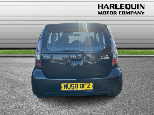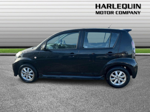 BRISTOL CAZ THIS 2008 DIAHATSU SIRION 1.5i SX 5 DOOR PETROL MANUAL IN METALLIC BLACK WITH CONTRASTING BLACK WITH RED POLKA DOT INTERIOR FULL SERVICE HISTORY BEING LAST SERVICED @ 57,000 MILES 1 PRIVATE OWNER 2 KEYS AIR CON CD PLAYER ELECTRIC WINDOWS REAR SPOILER WITH SIDE SKIRTS 14 INCH 8 SPOKE ALLOYS BRISTOL CLEAN AIR ZONE FRIENDLY Adjustable Steering Column/Wheel, Air Bag Driver, Air Bag Passenger, Air Bag Side, Air-Conditioning, Alloy Wheels (14in), Anti-Lock Brakes, Armrest, Black, Body Coloured Bumpers, Central Door Locking, Centre Rear Seat Belt, Cup Holder, Electric Windows (Front/Rear), Electronic Brake Force Distribution, Front Fog Lights, Head Restraints, Immobiliser, In Car Entertainment (Radio/CD), Metallic Paint, Mirrors External, Parking Aid (Rear), Power Socket, Power-Assisted Steering, Seat - ISOFIX Anchorage Point (Two Seats, Seat Belt Pre-Tensioners, Seat Height Adjustment, Spare Wheel (Space Saver), Speakers, Upholstery Cloth