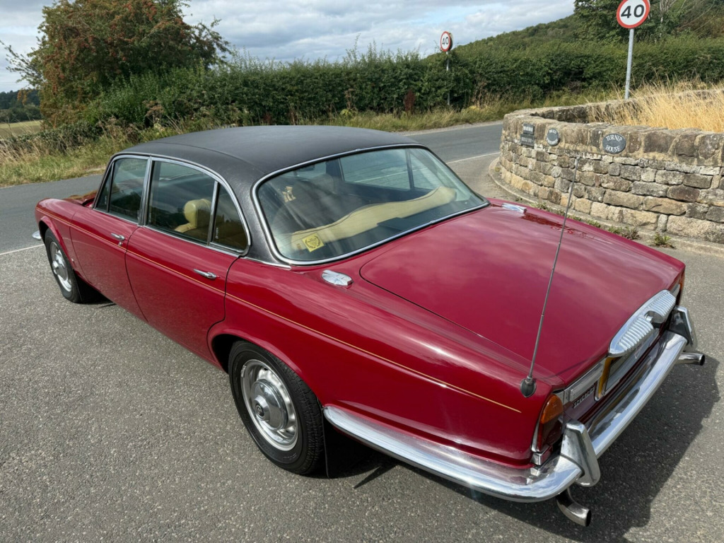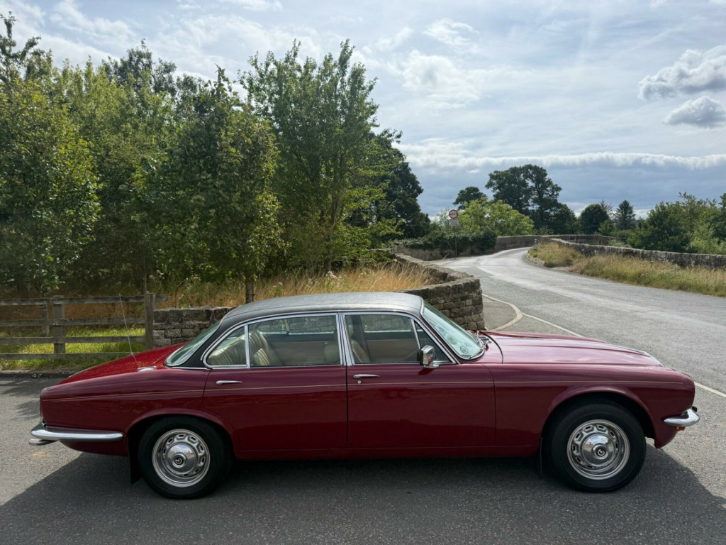 Presenting this wonderful LWB Daimler Sovereign finished in damson red and complemented with full beige leather seats and a black vinyl roof, this vehicle has been with its present owner for the last 38 years, and he has sadly had to give up driving through health reasons. The vehicle has been garaged since his ownership and is now MOT and tax exempt. This 1978 Daimler Sovereign presents a rare chance to own a piece of automotive history, boasting a substantial 4.2 litre petrol engine.  As a classic example of Daimler's commitment to luxury and performance, this Sovereign offers a refined driving experience. Jaguar launched the XJ6 in 1968, with the Daimler variant released a year later. The Coventry firm’s marketing people called it “the finest Jaguar ever”, which wasn’t hyperbole because it set a new standard for saloon car civility and luxury.The first model ran up until 1973, albeit with a few upgrades along the way, including a new three-speed automatic transmission that allowed keen drivers to hold onto the lower ratios for longer, improving acceleration. Cosmetic changes included the option of a long-wheelbase version in 1972, which gave the rear passengers an extra four inches of legroom. The Series II cars arrived in 1973 with a modest facelift that included a lower radiator grille and raised bumpers to meet Federal impact legislation. More significantly, buyers were now restricted to the ultra-pretty short-wheelbase Coupé or the long-wheelbase saloon; neither was a hardship.Nor was the retention of the silky-smooth 4.2 engine, which remained the most popular engine for both Jaguar and Daimler cars in the UK.The robust 4.2-litre engine provides ample power, making this Daimler Sovereign a capable and enjoyable vehicle. Its enduring design and engineering highlight the quality associated with the Daimler marque, offering a compelling proposition for enthusiasts and collectors alike.