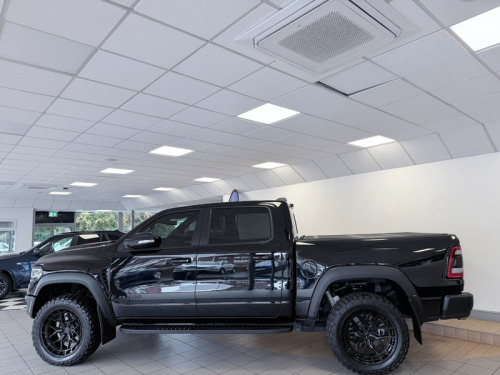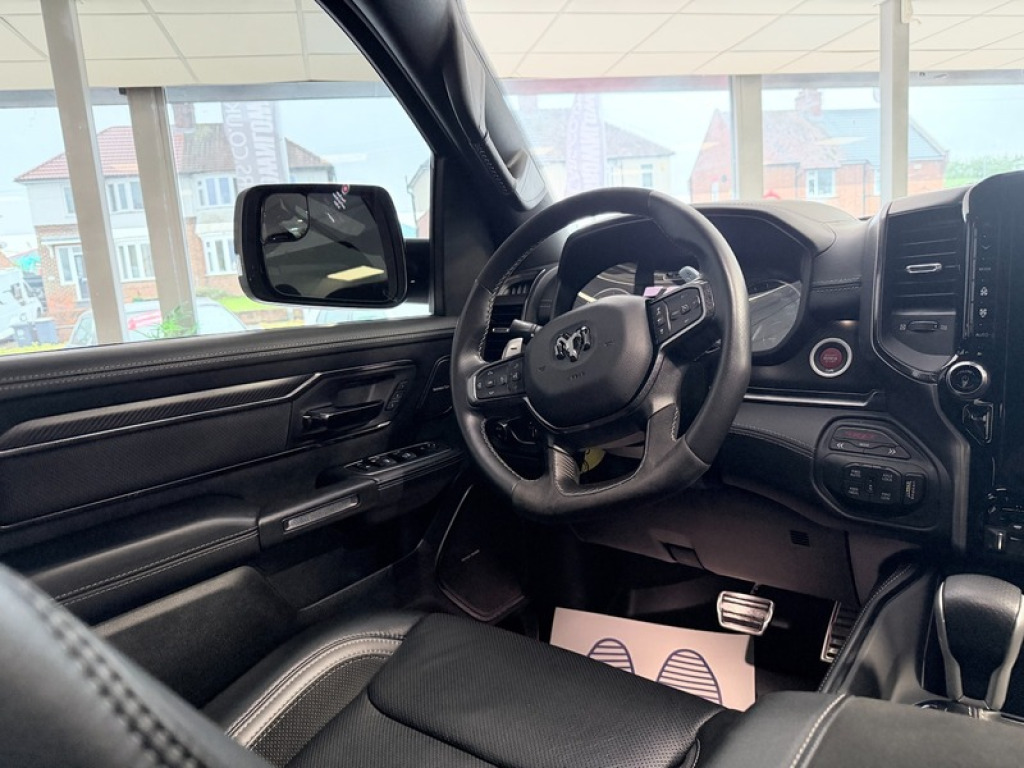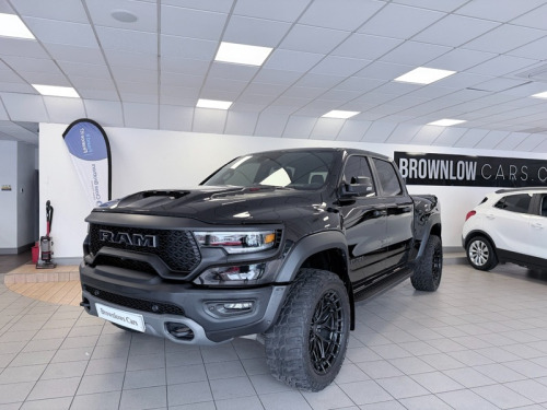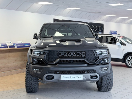 The Ram TRX is the ultimate performance pickup ? designed to dominate on-road and off-road with its supercharged 6.2L V8 (the same powerhouse found in the Dodge Hellcat). This beast produces over 700 horsepower, making it the most powerful production truck in the world. Finished with aggressive styling and packed with tech, it?s as luxurious inside as it is brutal under the bonnet. Key Features & Equipment 6.2L Supercharged HEMI V8 ? 702BHP / 650 lb-ft torque 0?60mph in 4.5 seconds ? supercar performance in a pickup 8-Speed Automatic Transmission with paddle shifters 4x4 Off-Road System with Bilstein Black Hawk e2 adaptive suspension 12' Touchscreen Infotainment System with Uconnect, Sat Nav, Apple CarPlay & Android Auto Premium Harman Kardon Sound System Heated & Ventilated Leather Sports Seats Heated Steering Wheel Dual-Zone Climate Control Adaptive Cruise Control Forward Collision Warning & Lane Keep Assist 360? Camera with Parking Sensors Keyless Entry & Push-Button Start Performance Hood, Widebody Arches & Aggressive TRX Styling Load Bed with Liner & Tow Package Massive Off-Road Tyres on alloy wheels 22in Alloy Wheels, ABS, Air Conditioning, Alarm, Alloy Wheels, Bluetooth, Body Coloured Bumpers, CD Player, Central Locking, Climate Control, Cruise Control, Cup Holders, ESP, Electric Adjustable Seats, Electric Folding Mirrors, Electric Heated Seats, Electric Mirrors, Electric Windows, Engine Immobiliser, Folding Rear Seats, Four Wheel Drive, Front Airbags, Front Fog Lights, Heated Door Mirrors, Heated Rear Windshield, Heated Windscreen, Hill-Start Assist, ISOFix Anchor Point, Keyless Door Locks, LED Lights, Lane Assist, Launch Control, Leather Seats, MOT, Metallic Paint, Parking Camera, Parking Sensors, Power Assisted Steering, Privacy/Tinted Glass, Radio, Rain Sensor, Safety Belts Rear, Satellite Navigation, Service History, Speakers, Sports Suspension, Sports Tuning, Start Stop System, Steering Wheel Controls, Traction Control, V5 Registration Document