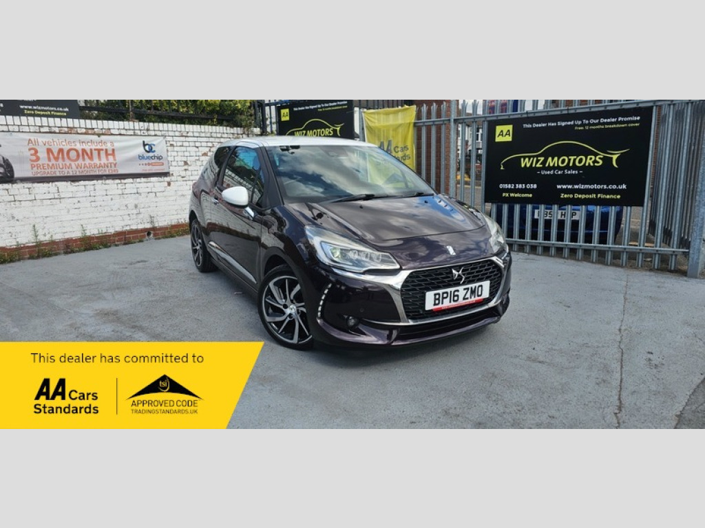 Dear customers let me introduce you to our beautiful DS AUTOMOBILES DS 3 1.2 PureTech Prestige Hatchback 3dr Petrol Manual Euro 6 (s/s) (130 ps) . It has Low Mileage. Good Condition. HPI Clear. MOT 29/07/26. Car will come with Long MOT. It Has Service History and 1Previous keeper. Comes with warranty, 2keys and Free 12MONTHS roadside recovery. You are in safe Hands as we have signed our dealer promise with AA. Delivery on Your Doorstep, Credit & Debit Cards Accepted. Part exchange welcome. We Offer Zero Deposit Finance with Rates starting from 5.5% Flat Rate ( subject to status) and deal with different panel of Lenders to get you the best Possible Rates to suit your budget. We can arrange your finance Online, over the phone or in person. You can Also apply finance directly on Our website at www.wizmotors.co.uk or call us on 01582 383038 We offer Part Exchange Valuations and give you the best possible Price for you Part Exchange car. wiz motors ltd. Provides high standard of Customer care over 06 Years. Our Friendly and Experienced Staff are always here to Help you with your finance packages, settlements, part exchange valuations and all aspects of your purchase to help making your purchase a very pleasant experience and make your next purchase a memorable one. We prepare our vehicles to a high standard. All our cars are mechanically inspected by our experienced engineers and HPI checked. Full HPI report, vehicle comes with warranty, Free 12MONTHS roadside recovery with AA. 5days Drive away Insurance can be arranged (Charges Apply). All Dealer facilities available. We accept all major debit and credit cards. We deliver cars Nationwide to your door step. The vehicle specification displayed may not be exact for this vehicle. Please contact us to confirm the precise specifications. Always check Outstanding recalls. Please ask the salesman if the recall will be carried out before you make your purchase. Calll 01582 383038, for any further details, Our address is Wizmotors ltd.Front Parking Yard, Britania Estate,Leagrave Road. Luton, Beds. LU3 1RJ, Opposite 320 LEAGRAVE ROAD, Luton, LU31Rj Open 7days. Vehicle admin fee £99 Note. At Wiz Motors, we check every vehicle for any outstanding recalls. This can be found on https://www.gov.uk/check-mot-history Before purchasing a vehicle from our dealership, please check the car on the link above for your own piece of mind. Any recall is repaired free of charge by the manufacture. Give us a call if you find any outstanding recall so we can book this vehicle with manufacturer to sort it out 12V Power Socket, 17in Alloy Wheels, ABS, Adjustable Steering, Air Conditioning, Alarm, Alloy Wheels, Android Auto, Automatic Headlight Levelling, Automatic Rearview Mirror Dimming, Bluetooth, Body Coloured Bumpers, Brake Assist, CD Multichanger, CD Player, Cassette Player, Catalytic Converter, Central Locking, Climate Control, Cruise Control, Cup Holders, DVD Player, Day/night Rearview Mirror, Daytime Running Lights, ESP, Electric Adjustable Seats, Electric Folding Mirrors, Electric Mirrors, Electric Windows, Engine Immobiliser, Folding Rear Seats, Front Airbags, Front Fog Lights, Heated Door Mirrors, Heated Rear Windshield, Heated Windscreen, Hill-Start Assist, ISOFix Anchor Point, Keyless Door Locks, Lane Assist, MOT, MP3, MP3 Player Connection, Parking Assistance, Parking Camera, Parking Sensors, Particule Filter, Privacy/Tinted Glass, Radio, Rain Sensor, Reading Lights, Rear Air Vents, Rear Airbags, Rear Spoiler, Safety Belts, Safety Belts Rear, Satellite Navigation, Service History, Side Impact Airbags, Spare Wheel, Speakers, Speed Limiter, Sports Seats, Sports Suspension, Start Stop System, Steering Wheel Controls, Traction Control, Tuning, V5 Registration Document