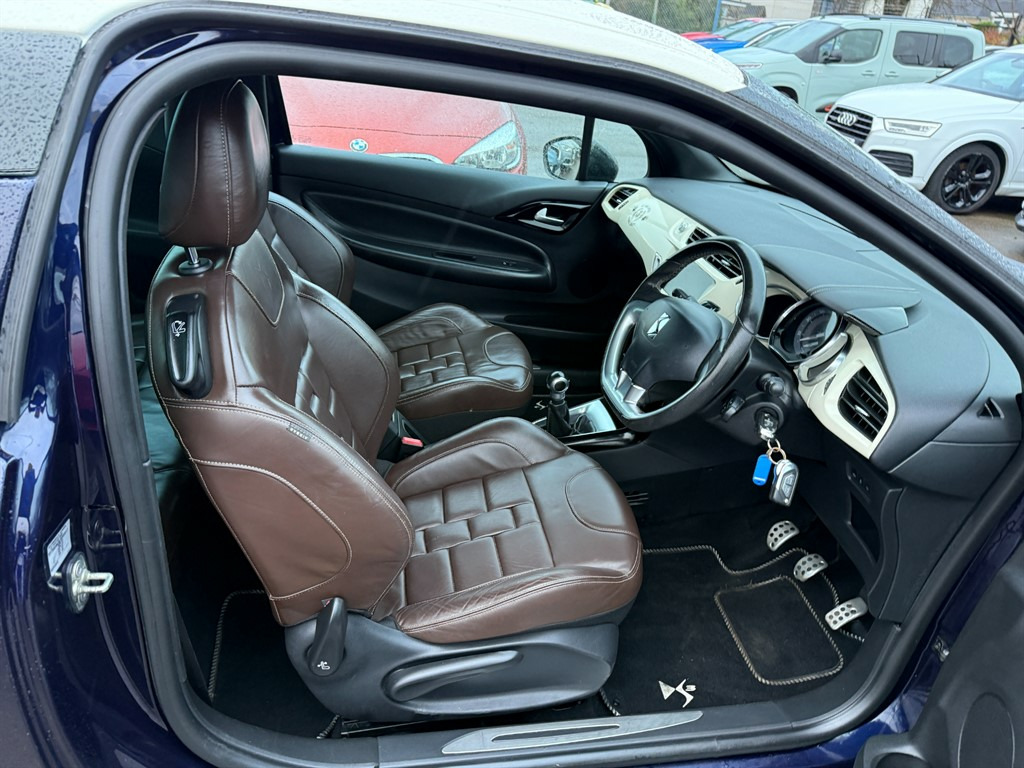 DS 3 1.2 Cafe Racer in metallic purple. A very rare Cafe Racer Edition with just 50k miles from brand new. As you can imagine the car is in fantastic condition both inside and out. Drives as good as it looks too. It's just been fully serviced including a new timing belt too! This 2018 model, finished in an eye-catching purple, is not only visually appealing but also packed with an array of premium features designed to enhance your driving experience. Huge spec including Full Brown Leather Upholstery, Cruise Control, Climate Control, Apple Car Play/Android Auto, Bluetooth Hands Free, Bluetooth Audio Streaming, Sat-Nav, Reversing Camera, DAB Radio, Front & Rear Parking Sensors, A/C, Alloy Wheels etc. Don’t miss out on this exceptional vehicle that combines style, technology, and comfort. Contact us now at Coopers Car Sales on 02920885149 to arrange a viewing or test drive. Experience the DS 3 for yourself and see how it can transform your daily drives! 12v Socket,Adjustable Steering Wheel,Air Conditioning,Alarm,Alloy Wheels,Anti Lock Brakes,Android Car Play,Apple Car Play,Auto On Headlights,Aux Input,Bluetooth Audio Streaming,Bluetooth Telephone Hands Free,CD Radio,Central Locking,Climate Control,Cloth Upholstery,Cruise Control,Cupholders,DAB Radio,Driver Airbag,Electric & Heated Door Mirrors,Electric Windows,Front Fog Lights,Fuel Computer,Front Parking Sensor,Height Adjustable Drivers Seat,Immobiliser,ISOFIX,Leather Upholstery,Metallic Paint,Multiple Airbags,Passenger Airbag,Power Assisted Steering,Rear Parking Sensor,Remote Central Locking,Reversing Camera,Satellite Navigation,Split Folding Rear Seats,Traction Control,Trip Computer,Tyre Pressure Monitor,USB