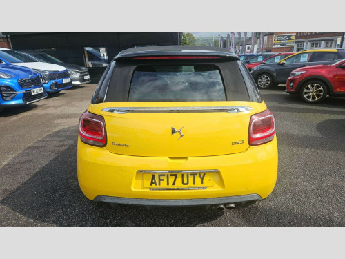 This 2017 DS DS 3 Cabrio 1.6 THP DSport Cabriolet with a petrol engine and manual transmission is a sleek and sporty convertible with only 52000 miles on the clock. With 5 seats and 2 doors, it's the perfect combination of style and practicality. It's ULEZ compliant and comes with an MOT that expires on 09/03/2026, giving you peace of mind for years to come. The car is packed with features including a 7in touchscreen, Bluetooth handsfree and media streaming, as well as a 12V socket and auxiliary socket for convenience. With 165 bhp, this car is sure to provide an exhilarating driving experience while still being fuel efficient. Don't miss out on the opportunity to own this stunning and well-equipped convertible.,  v socket - front, 7in touchscreen, auxilary socket, bluetooth handsfree, bluetooth media streaming, dab digital radio, ds connect box, hi-fi system audio upgrade, rds radio with 6 speakers and aux socket, speakers x6, 3d led rear lights, front fog lights, headlights - automatic, headlights - washers, headlights - xenon led vision, led daytime running lights, abs - anti-lock braking system, active city brake, airbags - curtain, airbags - driver, airbags - front lateral, airbags - front passenger, alarm, eba - electronic brake assistance, ebd - electronic brakeforce distribution, esc - electronic stability control, front seat belt pre-tensioners with force limiters, isofix - child anchorage points - two outer rear, remote central locking, seat belt unfastened warning, air conditioning - automatic-digital, aluminium effect dashboard strip, aluminium sports pedals, auto dimming electrochrome rear view mirror, black panel night-time instrument lighting, boot lighting, bottle holder, chrome effect gear surround, door sill protectors - chrome, drivers and passengers sunvisor with courtesy mirror, front courtesy and reading lights, front seat back pockets, gloss black centre console, head restraints - rear, height and reach adjustable steering wheel, height-adjustable drivers seat, height-adjustable front passenger seat, interior mood lighting, lashing eyes in the boot, leather handbrake with chrome insert, leather steering wheel with chrome inserts, rain sensitive windscreen wipers, rear split-folding seats, scented air freshener, sports seats, steering wheel mounted controls, body colour rear spoiler, chrome door handles, chrome front fog light surrounds, chrome front grille surround, chrome rear bumper insert, chrome side rubbing strips, dark tinted rear windows, door mirrors - roof coloured, electric windows - front with one-touch operation on drivers side, electrically heated and folding door mirrors, pop-up roof wind-deflector, roof - black touch fabric, space saver spare wheel - steel, cruise control with speed limiter, exterior temperature display, multi-function on-board trip computer, rear parking sensors, sport suspension, tyre pressure monitor, variable-assistance power steering