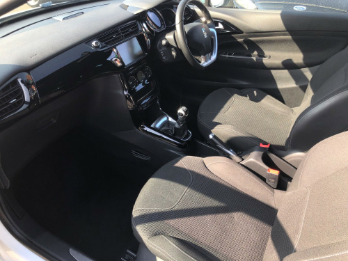 FREE 6 MONTHS RAC GOLD WARRANTY - FREE 12 MONTHS RAC ROADSIDE ASSISTANCE - This 2015 DS DS 3 1.2 PureTech 110 DStyle Nav 3dr hatchback has covered 36000 miles and is powered by petrol. With 5 seats and 3 doors, this car is ULEZ compliant, making it ideal for driving in low emission zones. Boasting a sleek design and efficient performance, this DS 3 has had 6 previous registered keeper(s). Including modern features such as a 7'' touch screen, Bluetooth + USB connectivity, cruise control + speed limiter, and eMyWay Satellite Navigation, as well as the DS connect box emergency assist system, this vehicle offers both style and practicality for its passengers.  touch screen, bluetooth + usb, cruise control + speed limiter, ds connect box emergency assist system, emyway satellite navigation, multi function trip computer, outside temperature display, rear parking sensor, service interval indicator, variable power steering, sports suspension, arkamys hi-fi speakers with digital amplifier and subwoofer, auxiliary input socket, dab digital radio, steering wheel mounted controls, 3d effect led rear lights, automatic activation of hazard warning lights, body coloured bumpers, chrome door handles, chrome effect rear number plate trim, chrome exhaust tailpipe, chrome front fog light surround, chrome grille surround, chrome rubbing strips, dark tinted rear windows, electric adjustable door mirrors, electric front windows, front fog lights, height adjustable headlamps, led daytime running lights, rear wiper, 1/3 to 2/3 split folding rear seats, 12v socket, air filter, automatic air conditioning, boot light, chrome door-sill entry guards, driver, driver/pass sunvisor/covered courtesy mirrors, front and rear headrests, front courtesy lights, front door pockets with bottle holders, front reading light, front seat and rear pockets, gloss black gear knob, height/reach adjust steering wheel, instrument lighting dimmer, interior mood lighting, isofix rear child seat preparation, lashing eyelets in boot, leather handbrake, leather steering wheel, pollen filter, reclining rear seats, 5 three point inertia reel seatbelts, abs + ebd + eba, curtain airbags, driver seatbelt warning indicator, driver/front passenger airbags, esp, front lateral airbags, front passenger, front seatbelt pretensioners with force limiters, tyre pressure monitoring system, deadlocks, immobiliser, remote control central locking, chrome trim to gear surround and handbrake, gloss black centre console and interior door handle surround, 17'' Alloys