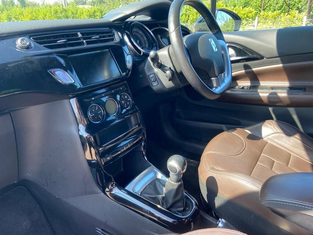 Introducing our Citroen DS3 1.2 finished in a dark blue with a brown leather full interior with just 42,000 miles covered. Great driving car engine sounds good and goes through the gears with ease. Bodywork in great condition interior clean with no rips or bad odours. Full leather interior threw out, AC, front and rear heated screens, great service history and 4 clean alloys. Great service history and maintenance receipts. Will come with service and mot before going out. Low insurance group and cheap to run. Ulez compliant. All our cars undergo an extensive PDI check and a 50 mile road test to assure they perform well expected. Call now to arrange your viewing!   12v Socket - Front, 17in Alloy Wheels - Aphrodite Black Diam, 3D LED Rear Lights, 7in Touchscreen, ABS - Anti-lock Braking System, Air Conditioning - Automatic-Digital, Airbags - Curtain, Airbags - Driver, Airbags - Front Lateral, Airbags - Front Passenger, Aluminium Sports Pedals, Armrest - Front Centre, Auxilary Socket, Black Panel Night-time Instrument Lighti, Bluetooth Handsfree, Bluetooth Media Streaming, Boot Lighting, Bottle Holder, Carpet Mats - 60 Years-Premium, Chrome Door Handles, Chrome Effect Gear Surround, Chrome Front Fog Light Surrounds, Chrome Front Grille Surround, Chrome Rear Bumper Insert, Chrome Side Rubbing Strips, Compressor with Puncture Repair Kit, Cruise Control wit