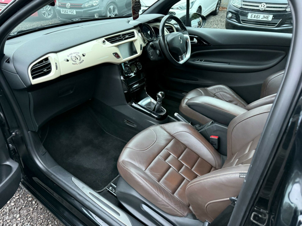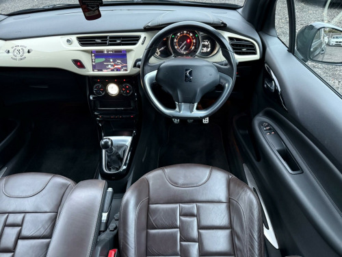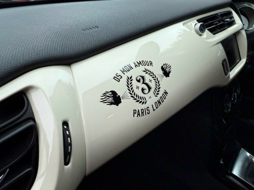 This 2018 DS 3 PureTech Cafe Racer offers an exceptional blend of style and efficiency, boasting an impressive 66 miles per gallon. This Euro 6 compliant 1.2 litre petrol model comes in the distinctive Cafe Racer trim, featuring automatic air conditioning for your comfort and DS LED Vision headlights for enhanced visibility. The Convenience Pack includes automatic headlights, and you'll also benefit from Bluetooth handsfree and media streaming with a USB socket, alongside a reversing camera for easier parking.Experience a responsive drive with a 0-62mph acceleration time of just 9.6 seconds, demonstrating its performance capabilities. The low CO2 emissions further highlight its efficiency, making it a more environmentally conscious choice compared to many other vehicles. This DS 3 is designed to provide a refined and enjoyable driving experience. volt socket in cabin, 17in alloy wheels - bellone black diamond-cut, 3d led rear lights, 7in colour touchscreen, abs - anti-lock braking system with electronic brakeforce distribution and emergency braking assistance, alarm, automatic air conditioning, black panel on-off instrument lighting, bluetooth handsfree and media streaming with usb socket, boot lighting, cafe racer branding on roof, cafe racer branding on wings, cafe racer embossed seats with terre de cassel stitching, cafe racer exterior badging, chrome ds wings grille, chrome side rubbing strips, coloured plip key insert, compressor with puncture repair kit, convenience pack, cruise control with speed limiter, dab digital radio, ds connect box emergency and assistance system, ds led vision - xenon headlights, dark tinted rear windows, driver-front passenger-front lateral and curtain airbags, drivers unfastened seat belt warning, drivers and passengers sunvisor with courtesy mirror, esc - electronic stability control, electrically adjustable door mirrors, exterior temperature display, five 3-point inertia reel seat belts, front armrest, front courtesy and reading lights, front door pockets with bottle holder, front electric windows, front seat back pockets, front seat belt pretensioners, gei - gear efficiency indicator, gloss black door mirrors, height and reach adjustable steering wheel, height-adjustable drivers seat, hill start assist, immobiliser, integrated air freshener, interior mood lighting, led daytime running lights, led front fog lights, lashing eyes in the boot, leather handbrake with chrome insert, locking wheel bolts, lux pack, matt black base of door mirrors, mirror screen with mirror link and car play, multi-function on-board trip computer, parthenon cream dashboard with cafe racer decorations, parthenon cream key plip with cafe racer badging, parthenon cream roof and wheels centres, rds radio with 6 speakers and aux socket, rear parking sensors, rear split-folding seats, remote central control locking with deadlocks, rev counter, reversing camera, satellite navigation, satin chrome door sill protectors, satin chrome steering wheel inserts, single chrome exhaust tailpipe, soft-touch upper dashboard, sport suspension, steering wheel mounted controls, two rear isofix mounting points, tyre pressure monitor, variable-assistance power steering