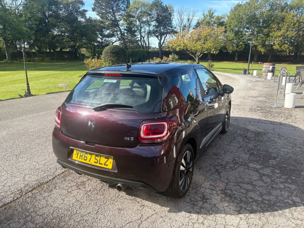 This stylish 2017 DS 3 1.2 PureTech Chic Hatchback with a mileage of 63000 miles is the perfect urban companion, offering a smooth and efficient petrol engine that is ULEZ compliant. With a MOT expiry date of 20/07/2026, this 3-door Hatchback provides ample space with its 5 seats and includes modern features such as a 7in Colour Touchscreen, Bluetooth Handsfree and Media Streaming with USB Socket, DAB Digital Radio, and RDS Radio with 6 Speakers and AUX Socket, ensuring a comfortable and connected driving experience. Whether navigating city streets or cruising on the highway, this DS 3 is a reliable and stylish option for all your driving needs.,   volt socket in cabin, 7in colour touchscreen, bluetooth handsfree and media streaming with usb socket, dab digital radio, rds radio with 6 speakers and aux socket, 16in alloy wheels - ashera black diamond-cut, body colour door handles, chrome ds wings grille, chrome side rubbing strips, compressor with puncture repair kit, electrically adjustable door mirrors, front electric windows, locking wheel bolts, roof colour painted door mirrors, single chrome exhaust tailpipe, 3d led rear lights, height-adjustable halogen headlights, led daytime running lights, abs - anti-lock braking system with electronic brakeforce distribution and emergency braking assistance, alarm, coloured plip key insert, driver-front passenger-front lateral and curtain airbags, drivers unfastened seat belt warning, esc - electronic stability control, five 3-point inertia reel seat belts, front seat belt pretensioners, immobiliser, remote central control locking with deadlocks, two rear isofix mounting points, air conditioning, black centre console and interior door handle surrounds, black panel on-off instrument lighting, boot lighting, drivers and passengers sunvisor with courtesy mirror, front courtesy and reading lights, front door pockets with bottle holder, front seat back pockets, gloss black gear knob, height and reach adjustable steering wheel, height-adjustable drivers seat, integrated air freshener, interior mood lighting, lashing eyes in the boot, leather handbrake with chrome insert, leather steering wheel, rear split-folding seats, satin chrome door sill protectors, satin chrome steering wheel inserts, soft-touch upper dashboard, steering wheel mounted controls, tungsten dashboard strip, cruise control with speed limiter, exterior temperature display, gei - gear efficiency indicator, multi-function on-board trip computer, rev counter, sport suspension, tyre pressure monitor, variable-assistance power steering
