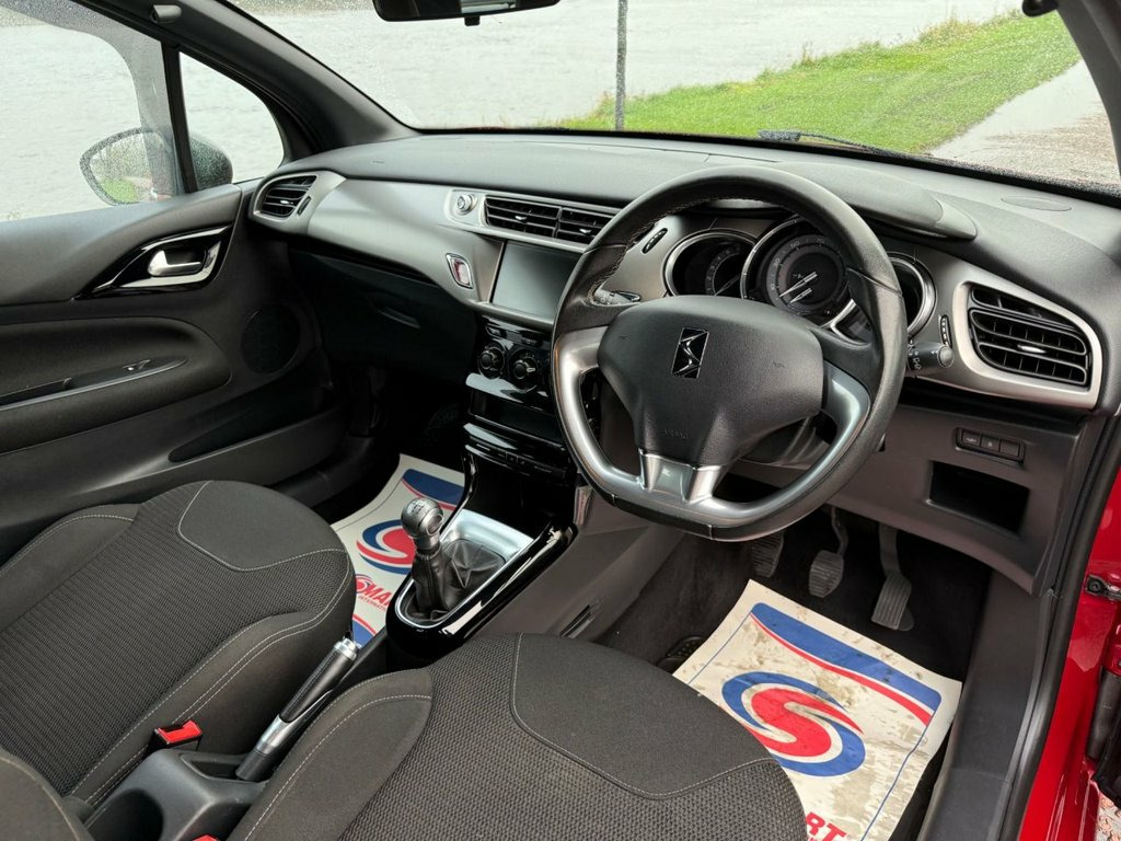 STUNNING DS3 IN RED WITH FULL BLACK PACK, 16" ALLOY WHEELS, BLUETOOTH, DAB, AIR CON, CRUISE CONTROL, ELECTRIC WINDOWS, 2 KEYS AND LOTS MORE, WE WILL ALSO PROVIDE YOU WITH A FRESH SERVICE, MOT AND WARRANTY. 12 Volt Socket in Cabin, 16in Alloy Wheels - Ashera Black Diamond, 3D LED Rear Lights, 7in Touchscreen, ABS - Anti-lock Braking System with Elec, Air Conditioning, Alarm, Black Centre Console and Interior Door H, Black Panel On-Off Instrument Lighting, Bluetooth Handsfree and Media Streaming , Boot Lighting, Chrome Door Handles, Chrome DS Wings Grille, Chrome Rear Bumper Insert, Chrome Side Rubbing Strips, Coloured Plip Key Insert, Compressor with Puncture Repair Kit, Cruise Control with Speed Limiter, DAB Digital Radio, Driver-Front Passenger-Front Lateral and, Drivers and Passengers Sunvisor with Cou, Drivers Unfastened Seat Belt Warning, Electrically Adjustable Door Mirrors, ESC - Electro