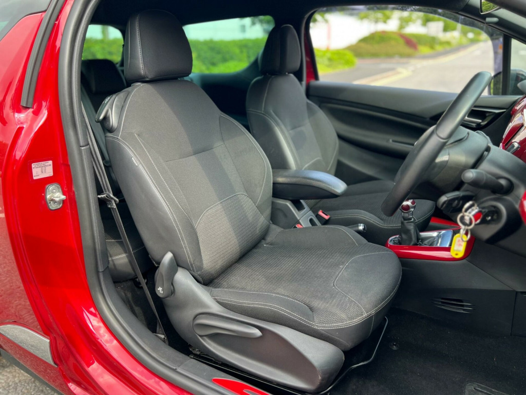 2017 DS Automobiles DS3 Chic 1.2 petrol finished in red. Only 34,000 warranted miles on the clock. Comes with a 12 month warranty! MOT til 215th August 2026. 2 former keepers from new. Service history available; 5 services, 4 Main dealers. Car drives well with no mechanical faults. AIRBAG RECALL COMPLETED!!! Comes with a top spec including; alloy wheels, leather steering wheel, on-board computer, Radio DAB/FM, electric windows, central locking, AC/Climate control, TPMS, cup holders and many more. Nationwide Delivery Available. P/X Welcome. HPI Clear. ULEZ Compliant. 2 Keys. Any questions don't hesitate to contact us on 07443456706 volt socket in cabin, 17in alloy wheels - aphrodite black diamond-cut, 3d led rear lights, 7in touchscreen, abs - anti-lock braking system with electronic brakeforce distribution and emergency braking assistance, alarm, automatic air conditioning, black panel on-off instrument lighting, bluetooth handsfree and media streaming with 1a usb socket, boot lighting, chrome ds wings grille, chrome door handles, chrome rear bumper insert, chrome side rubbing strips, coloured plip key insert, compressor with puncture repair kit, cruise control with speed limiter, dab digital radio, ds connect box emergency and assistance system, dark tinted rear windows, driver-front passenger-front lateral and curtain airbags, drivers unfastened seat belt warning, drivers and passengers sunvisor with courtesy mirror, esc - electronic stability control, electrically adjustable door mirrors, exterior temperature display, five 3-point inertia reel seat belts, front armrest, front courtesy and reading lights, front door pockets with bottle holder, front electric windows, front seat back pockets, front seat belt pretensioners, gei - gear efficiency indicator, gloss black centre console and interior door handle surrounds, gloss black gear knob, height and reach adjustable steering wheel, height-adjustable drivers seat, height-adjustable halogen headlights, immobiliser, integrated air freshener, interior mood lighting, led daytime running lights, led front fog lights, lashing eyes in the boot, leather handbrake with chrome insert, leather steering wheel, locking wheel bolts, mirror screen with mirror link and car play, multi-function on-board trip computer, rds radio with 6 speakers and aux socket, rear split-folding seats, remote central control locking with deadlocks, rev counter, roof colour painted door mirrors, satin chrome door sill protectors, satin chrome steering wheel inserts, single chrome exhaust tailpipe, soft-touch upper dashboard, sport suspension, steering wheel mounted controls, tungsten dashboard strip, two rear isofix mounting points, tyre pressure monitor, variable-assistance power steering, emyway satellite navigation