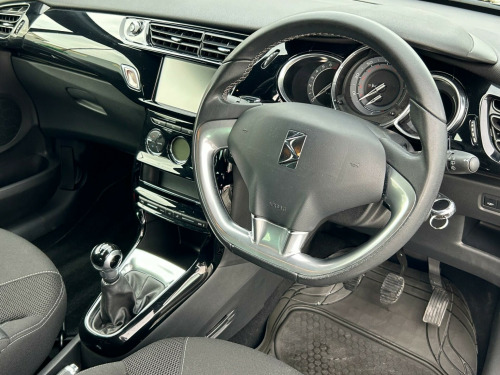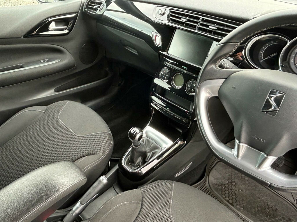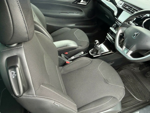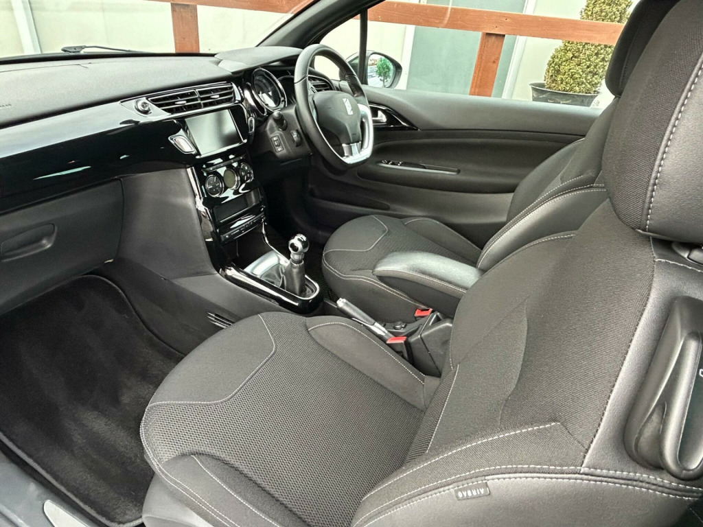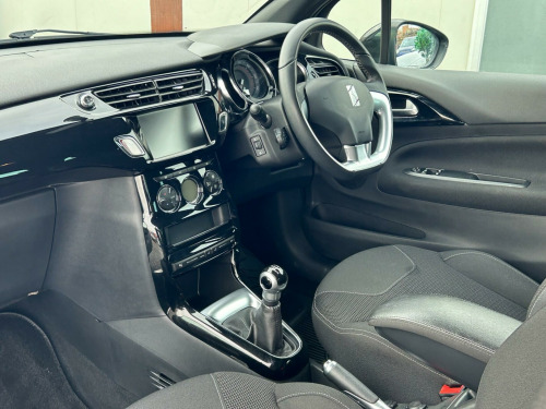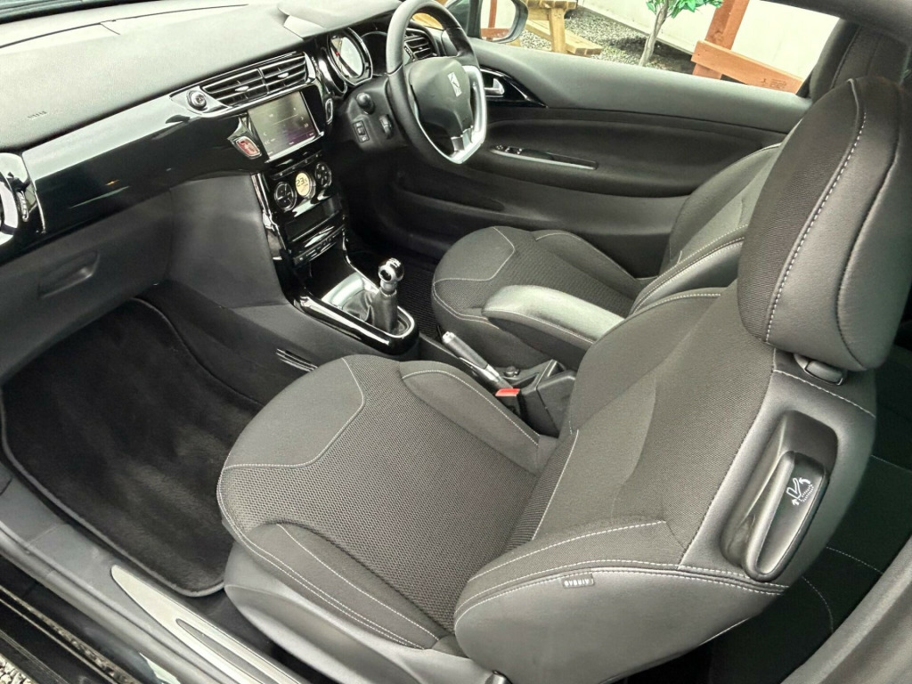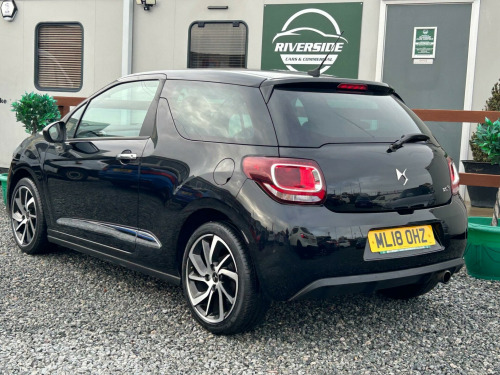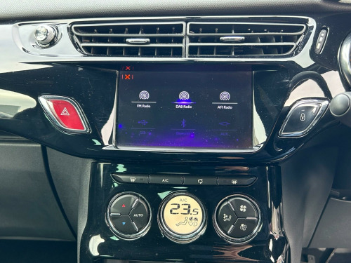 Finished In Black This 2018 DS3 PureTech Connected Chic is a stylish and well equipped hatchback. It features a 1.2 litre petrol engine and meets Euro 6 emission standards. Inside, you'll find automatic air conditioning with climate control, ensuring a comfortable cabin temperature. The Mirror Screen system, compatible with Mirror Link, Android Auto, and Apple CarPlay, allows seamless integration of your smartphone for navigation and entertainment. Bluetooth handsfree and media streaming, along with a 1A USB socket, further enhance connectivity.This DS 3 offers excellent running costs, achieving an impressive 61 miles per gallon. Its low CO2 emissions also mean it is more environmentally friendly than many comparable vehicles. These highlights demonstrate its efficiency and advanced technology, making it a smart choice for your next car., volt socket in cabin, 17in alloy wheels - aphrodite black diamond-cut, 3d led rear lights, 7in touchscreen, abs - anti-lock braking system with electronic brakeforce distribution and emergency braking assistance, alarm, automatic air conditioning, black panel on-off instrument lighting, bluetooth handsfree and media streaming with 1a usb socket, boot lighting, chrome ds wings grille, chrome door handles, chrome rear bumper insert, chrome side rubbing strips, coloured plip key insert, compressor with puncture repair kit, cruise control with speed limiter, dab digital radio, ds connect box emergency and assistance system, dark tinted rear windows, driver-front passenger-front lateral and curtain airbags, drivers unfastened seat belt warning, drivers and passengers sunvisor with courtesy mirror, esc - electronic stability control, electrically adjustable door mirrors, exterior temperature display, five 3-point inertia reel seat belts, front armrest, front courtesy and reading lights, front door pockets with bottle holder, front electric windows, front seat back pockets, front seat belt pretensioners, gei - gear efficiency indicator, gloss black centre console and interior door handle surrounds, gloss black gear knob, height and reach adjustable steering wheel, height-adjustable drivers seat, height-adjustable halogen headlights, immobiliser, integrated air freshener, interior mood lighting, led daytime running lights, led front fog lights, lashing eyes in the boot, leather handbrake with chrome insert, leather steering wheel, locking wheel bolts, mirror screen with mirror link and car play, multi-function on-board trip computer, rds radio with 6 speakers and aux socket, rear split-folding seats, remote central control locking with deadlocks, rev counter, roof colour painted door mirrors, satin chrome door sill protectors, satin chrome steering wheel inserts, single chrome exhaust tailpipe, soft-touch upper dashboard, sport suspension, steering wheel mounted controls, tungsten dashboard strip, two rear isofix mounting points, tyre pressure monitor, variable-assistance power steering, emyway satellite navigation