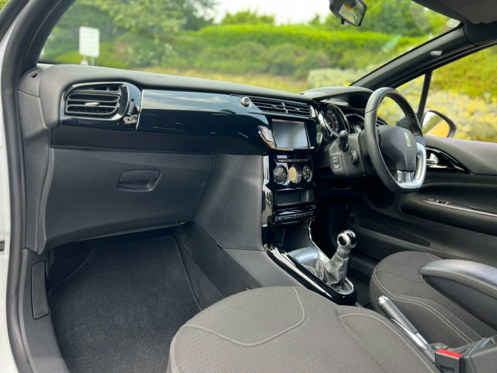 2018 DS Automobiles DS3 Connected Chic 1.2 petrol finished in white. Only 32,000 warranted miles on the clock. Comes with a 12 month warranty! Has a long MOT. 2 former keepers from new. Service history available; 4 services, 2 Main dealers. Car drives well with no mechanical faults. AIRBAG RECALL COMPLETED!!! Full V5 available. Comes with a top spec including; alloy wheels, leather steering wheel, cruise control, Radio DAB/FM, electric windows, central locking, AC/Climate control, TPMS, cup holders and many more. Nationwide Delivery Available. P/X Welcome. HPI Clear. ULEZ Compliant. 2 Keys. Any questions don't hesitate to contact us on 07443456706  volt socket in cabin, 17in alloy wheels - aphrodite black diamond-cut, 3d led rear lights, 7in touchscreen, abs - anti-lock braking system with electronic brakeforce distribution and emergency braking assistance, alarm, automatic air conditioning, black panel on-off instrument lighting, bluetooth handsfree and media streaming with 1a usb socket, boot lighting, chrome ds wings grille, chrome door handles, chrome rear bumper insert, chrome side rubbing strips, coloured plip key insert, compressor with puncture repair kit, cruise control with speed limiter, dab digital radio, ds connect box emergency and assistance system, dark tinted rear windows, driver-front passenger-front lateral and curtain airbags, drivers unfastened seat belt warning, drivers and passengers sunvisor with courtesy mirror, esc - electronic stability control, electrically adjustable door mirrors, exterior temperature display, five 3-point inertia reel seat belts, front armrest, front courtesy and reading lights, front door pockets with bottle holder, front electric windows, front seat back pockets, front seat belt pretensioners, gei - gear efficiency indicator, gloss black centre console and interior door handle surrounds, gloss black gear knob, height and reach adjustable steering wheel, height-adjustable drivers seat, height-adjustable halogen headlights, hill start assist, immobiliser, integrated air freshener, interior mood lighting, led daytime running lights, led front fog lights, lashing eyes in the boot, leather handbrake with chrome insert, leather steering wheel, locking wheel bolts, mirror screen with mirror link and car play, multi-function on-board trip computer, rds radio with 6 speakers and aux socket, rear split-folding seats, remote central control locking with deadlocks, rev counter, roof colour painted door mirrors, satin chrome door sill protectors, satin chrome steering wheel inserts, single chrome exhaust tailpipe, soft-touch upper dashboard, sport suspension, steering wheel mounted controls, tungsten dashboard strip, two rear isofix mounting points, tyre pressure monitor, variable-assistance power steering, emyway satellite navigation
