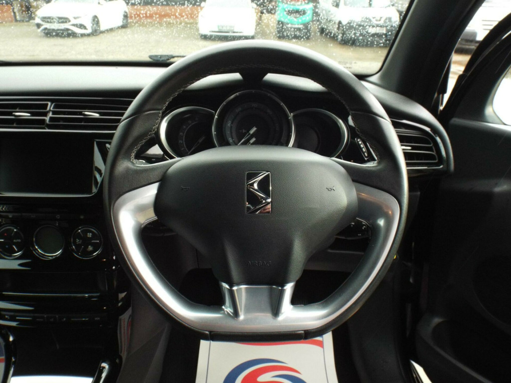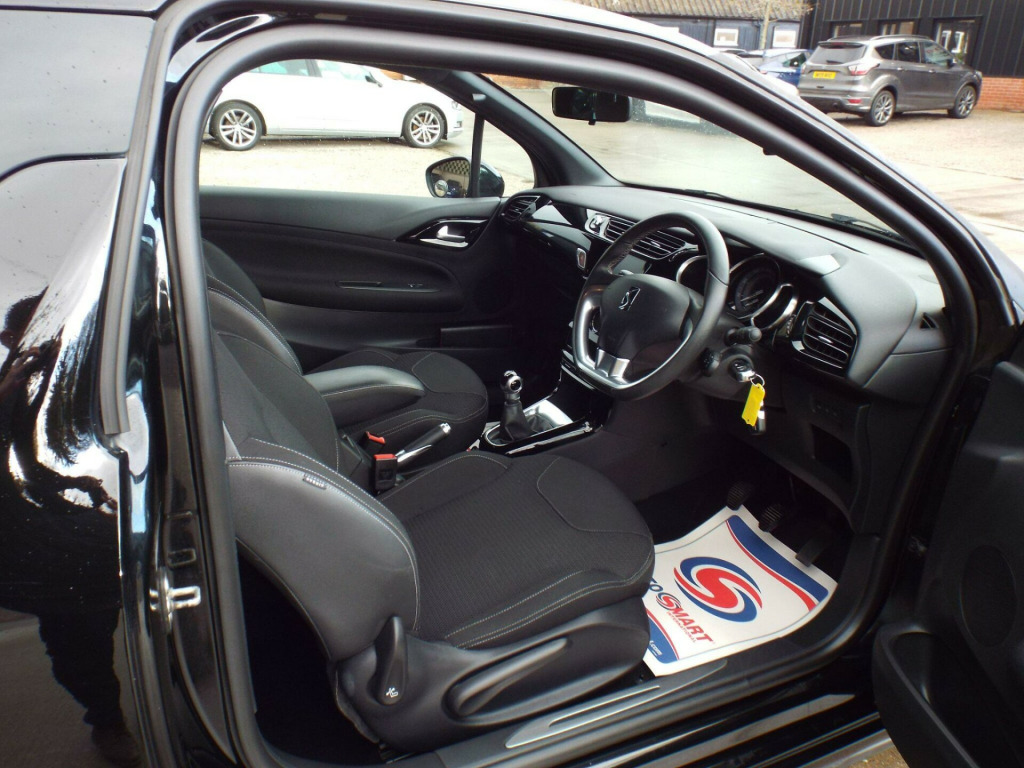 **NATIONWIDE DELIVERY AVAILABLE**This is a well looked after and good looking 2017/67 (Private plate stays) DS3 1.2 PureTech Connected Chic which comes with a Full service history (Including a brand new wet belt) a full years MOT and a great spec. Finished in Black the paintwork is in great condition and it has a good shine to it from all over. The black interior is also in great condition with no adverse wear at all. Great spec including: E/Windows, E/Mirrors, Remote C/L (2xKeys), Totally unmarked diamond cut alloy wheels, Premium tyres all round, LED DRLs, Front and rear fog lights, AM/FM/DAB Radio, Aux/USB Input, Bluetooth connectivity, Climate control with Air conditioning, Cruise control, ABS/PAS/DSC, Fully fitted mats plus loads more. This is a lovely example which has been well cared for, drives lovely and looks great. We offer excellent finance rates, accept credit/debit cards and welcome part exchange too..., volt socket in cabin, 17in alloy wheels - aphrodite black diamond-cut, 3d led rear lights, 7in touchscreen, abs - anti-lock braking system with electronic brakeforce distribution and emergency braking assistance, alarm, automatic air conditioning, black panel on-off instrument lighting, bluetooth handsfree and media streaming with 1a usb socket, boot lighting, chrome ds wings grille, chrome door handles, chrome rear bumper insert, chrome side rubbing strips, coloured plip key insert, compressor with puncture repair kit, cruise control with speed limiter, dab digital radio, ds connect box emergency and assistance system, dark tinted rear windows, driver-front passenger-front lateral and curtain airbags, drivers unfastened seat belt warning, drivers and passengers sunvisor with courtesy mirror, esc - electronic stability control, electrically adjustable door mirrors, exterior temperature display, five 3-point inertia reel seat belts, front armrest, front courtesy and reading lights, front door pockets with bottle holder, front electric windows, front seat back pockets, front seat belt pretensioners, gei - gear efficiency indicator, gloss black centre console and interior door handle surrounds, gloss black gear knob, height and reach adjustable steering wheel, height-adjustable drivers seat, height-adjustable halogen headlights, hill start assist, immobiliser, integrated air freshener, interior mood lighting, led daytime running lights, led front fog lights, lashing eyes in the boot, leather handbrake with chrome insert, leather steering wheel, locking wheel bolts, mirror screen with mirror link and car play, multi-function on-board trip computer, rds radio with 6 speakers and aux socket, rear split-folding seats, remote central control locking with deadlocks, rev counter, roof colour painted door mirrors, satin chrome door sill protectors, satin chrome steering wheel inserts, single chrome exhaust tailpipe, soft-touch upper dashboard, sport suspension, steering wheel mounted controls, tungsten dashboard strip, two rear isofix mounting points, tyre pressure monitor, variable-assistance power steering, emyway satellite navigation