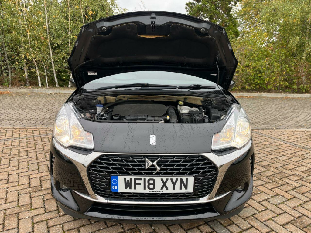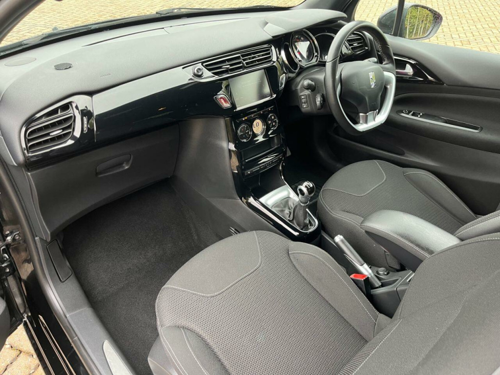 . 12 Volt Socket in Cabin, 17in Alloy Wheels - Aphrodite Black Diamond-Cut, 3D LED Rear Lights, 7in Colour Touchscreen, ABS - Anti-lock Braking System with Electronic Brakeforce Distribution and Emergency Braking Assistance, Alarm, Automatic Air Conditioning, Black Panel On-Off Instrument Lighting, Bluetooth Handsfree and Media Streaming with USB Socket, Boot Lighting, Chrome DS Wings Grille, Chrome Door Handles, Chrome Side Rubbing Strips, Coloured Plip Key Insert, Compressor with Puncture Repair Kit, Cruise Control with Speed Limiter, DAB Digital Radio, DS Connect Box Emergency and Assistance System, Dark Tinted Rear Windows, Driver-Front Passenger-Front Lateral and Curtain Airbags, Drivers Unfastened Seat Belt Warning, Drivers and Passengers Sunvisor with Courtesy Mirror, ESC - Electronic Stability Control, Electrically Adjustable Door Mirrors, Exterior Temperature Display, Five 3-Point Inertia Reel Seat Belts, Front Armrest, Front Courtesy and Reading Lights, Front Door Pockets with Bottle Holder, Front Electric Windows, Front Seat Back Pockets, Front Seat Belt Pretensioners, GEI - Gear Efficiency Indicator, Gloss Black Centre Console and Interior Door Handle Surrounds, Gloss Black Gear Knob, Gloss Black Kit - Gloss Black Dashboard Strip, Height and Reach Adjustable Steering Wheel, Height-Adjustable Drivers Seat, Height-Adjustable Halogen Headlights, Hill Start Assist, Immobiliser, Integrated Air Freshener, Interior Mood Lighting, LED Daytime Running Lights, LED Front Fog Lights, Lashing Eyes in the Boot, Leather Handbrake with Chrome Insert, Leather Steering Wheel, Locking Wheel Bolts, Mirror Screen with Mirror Link and Car Play, Multi-Function On-Board Trip Computer, RDS Radio with 6 Speakers and AUX Socket, Rear Parking Sensors, Rear Split-Folding Seats, Remote Central Control Locking with Deadlocks, Rev Counter, Roof Colour Painted Door Mirrors, Satellite Navigation, Satin Chrome Door Sill Protectors, Satin Chrome Steering Wheel Inserts, Single Chrome Exhaust Tailpipe, Soft-Touch Upper Dashboard, Sport Suspension, Steering Wheel Mounted Controls, Two Rear ISOFIX Mounting Points, Tyre Pressure Monitor, Variable-Assistance Power Steering, Perla Nera Black, 17in Alloy Wheels - Bellone Black Diamond-cut.