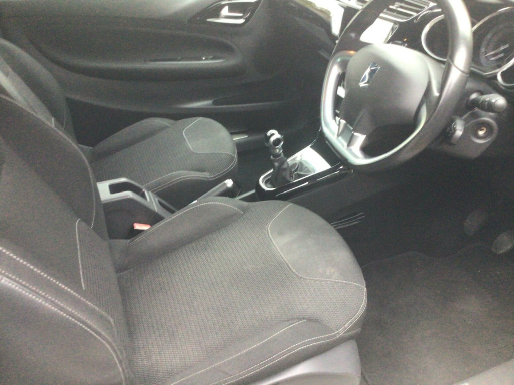 With a full service history and a clear vehicle history check, this 2016 DS AUTOMOBILES DS 3 1.2L Petrol, in DStyle trim, offers complete peace of mind. The DS 3 PureTech DStyle comes with a 6-month warranty and a 12 months MOT provided on purchase. Stay connected on the move thanks to Bluetooth handsfree and media streaming, and enjoy a comfortable environment with the built-in air conditioning.This DS 3 boasts impressive fuel economy, achieving up to 63 mpg, meaning fewer trips to the petrol station and reduced running costs. In addition to saving money on fuel, the low CO2 emissions mean you will be doing your bit for the environment. The car's acceleration, reaching 0-62mph in 9.6 seconds, demonstrates its responsive performance on the road., v socket - front, 17in alloy wheels - bellone black, 3d led rear lights, 7in touchscreen, abs - anti-lock braking system, air conditioning, airbags - curtain, airbags - driver, airbags - front lateral, airbags - front passenger, auxilary socket, black panel night-time instrument lighting, bluetooth handsfree, bluetooth media streaming, boot lighting, bottle holder, chrome door handles, chrome effect gear surround, chrome front fog light surrounds, chrome front grille surround, chrome rear bumper insert, chrome side rubbing strips, compressor with puncture repair kit, cruise control with speed limiter, dab digital radio, dark tinted rear windows, door mirrors - roof coloured, door sill protectors - chrome, drivers and passengers sunvisor with courtesy mirror, eba - electronic brake assistance, ebd - electronic brakeforce distribution, esc - electronic stability control, electric windows - front with one-touch operation on drivers side, electrically adjustable door mirrors, exterior temperature display, front courtesy and reading lights, front fog lights, front seat back pockets, front seat belt pre-tensioners with force limiters, gloss black centre console, gloss black kit - gloss black dashboard with black gear knob, head restraints - rear, headlights - halogen, height and reach adjustable steering wheel, height-adjustable drivers seat, isofix - child anchorage points - two outer rear, interior mood lighting, led daytime running lights, lashing eyes in the boot, leather handbrake with chrome insert, leather steering wheel with chrome inserts, multi-function on-board trip computer, rds radio with 6 speakers and aux socket, rear split-folding seats, remote central locking, scented air freshener, seat belt unfastened warning, soft-touch effect upper dashboard, speakers x6, sport suspension, steering wheel mounted controls, traction control, tyre pressure monitor, usb socket, variable-assistance power steering