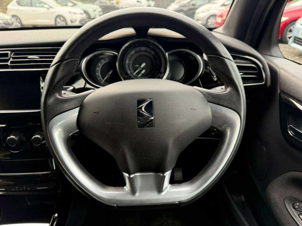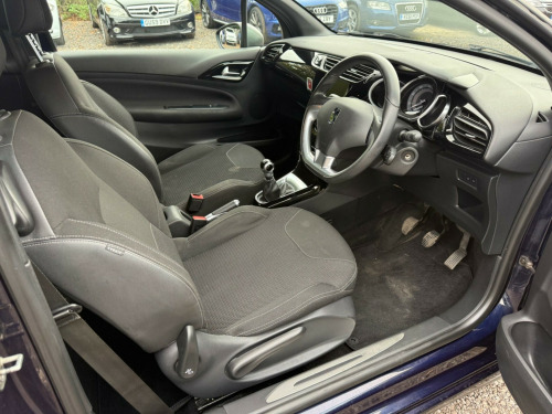 2016 DS 3 PureTech DStyle - 1.2L Petrol (Euro 6)Stylish, efficient, and fun to drive! This DS 3 PureTech DStyle delivers an impressive 63 MPG with a smooth 1.2L petrol engine meeting Euro 6 standards - great performance and low running costs.Features:•Bluetooth handsfree & media streaming•Air conditioning•Full service history•2 owners, 2 keys•Wet belt recently replaced•Comes with warrantyPerformance:0-62 mph in just 9.6 seconds with low CO? emissions - efficient and responsive.Any test or inspection welcome.Part exchange welcome.All card payments accepted.Finance available.For more information or to book a viewing/test drive please contact us. v socket - front, 17in alloy wheels - bellone black, 3d led rear lights, 7in touchscreen, abs - anti-lock braking system, air conditioning, airbags - curtain, airbags - driver, airbags - front lateral, airbags - front passenger, auxilary socket, black panel night-time instrument lighting, bluetooth handsfree, bluetooth media streaming, boot lighting, bottle holder, chrome door handles, chrome effect gear surround, chrome front fog light surrounds, chrome front grille surround, chrome rear bumper insert, chrome side rubbing strips, compressor with puncture repair kit, cruise control with speed limiter, dab digital radio, dark tinted rear windows, door mirrors - roof coloured, door sill protectors - chrome, drivers and passengers sunvisor with courtesy mirror, eba - electronic brake assistance, ebd - electronic brakeforce distribution, esc - electronic stability control, electric windows - front with one-touch operation on drivers side, electrically adjustable door mirrors, exterior temperature display, front courtesy and reading lights, front fog lights, front seat back pockets, front seat belt pre-tensioners with force limiters, gloss black centre console, gloss black kit - gloss black dashboard with black gear knob, head restraints - rear, headlights - halogen, height and reach adjustable steering wheel, height-adjustable drivers seat, isofix - child anchorage points - two outer rear, interior mood lighting, led daytime running lights, lashing eyes in the boot, leather handbrake with chrome insert, leather steering wheel with chrome inserts, multi-function on-board trip computer, rds radio with 6 speakers and aux socket, rear split-folding seats, remote central locking, scented air freshener, seat belt unfastened warning, soft-touch effect upper dashboard, speakers x6, sport suspension, steering wheel mounted controls, traction control, tyre pressure monitor, usb socket, variable-assistance power steering