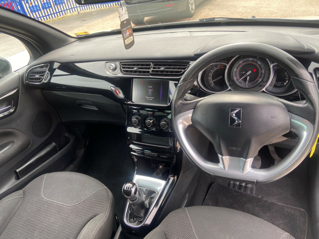 This 2015 DS DS 3 1.2 PureTech DStyle Hatchback with only 77714 miles on the clock is a stylish and fuel-efficient choice for any driver. Powered by a Euro 6 compliant petrol engine with 82 ps, this 3-door, 5-seat hatchback is ULEZ compliant and comes with a valid MOT until 04/09/2026. The interior boasts modern features such as a 7-inch touchscreen, Bluetooth handsfree and media streaming, as well as a 12v socket and auxiliary input for added convenience. With its sleek design and practicality, this DS 3 is the perfect choice for anyone in the market for a reliable and well-equipped vehicle.New catalytic converter Dec 22 v socket - front, 7in touchscreen, auxilary socket, bluetooth handsfree, bluetooth media streaming, dab digital radio, rds radio with 6 speakers and aux socket, speakers x6, usb socket, 17in alloy wheels - bellone black, chrome door handles, chrome front fog light surrounds, chrome front grille surround, chrome rear bumper insert, chrome side rubbing strips, compressor with puncture repair kit, dark tinted rear windows, door mirrors - roof coloured, electric windows - front with one-touch operation on drivers side, electrically adjustable door mirrors, 3d led rear lights, front fog lights, headlights - halogen, led daytime running lights, abs - anti-lock braking system, airbags - curtain, airbags - driver, airbags - front lateral, airbags - front passenger, eba - electronic brake assistance, ebd - electronic brakeforce distribution, esc - electronic stability control, front seat belt pre-tensioners with force limiters, isofix - child anchorage points - two outer rear, remote central locking, seat belt unfastened warning, traction control, air conditioning, black panel night-time instrument lighting, boot lighting, bottle holder, chrome effect gear surround, door sill protectors - chrome, drivers and passengers sunvisor with courtesy mirror, front courtesy and reading lights, front seat back pockets, gloss black centre console, gloss black kit - gloss black dashboard with black gear knob, head restraints - rear, height and reach adjustable steering wheel, height-adjustable drivers seat, interior mood lighting, lashing eyes in the boot, leather handbrake with chrome insert, leather steering wheel with chrome inserts, rear split-folding seats, scented air freshener, soft-touch effect upper dashboard, steering wheel mounted controls, cruise control with speed limiter, exterior temperature display, multi-function on-board trip computer, sport suspension, tyre pressure monitor, variable-assistance power steering