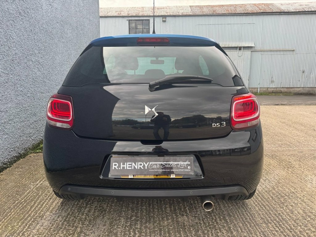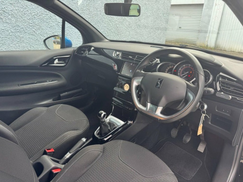 Stunning, low mileage DS3 with a black body and blue roof. This car is in brilliant condition inside and out. Features include Bluetooth, A/C, privacy glass in the rear windows and a built in air freshener, a classy touch specific to DS. £20 a year tax. Timing belt just replaced and airbag recall performed by Citroen. 12v Socket - Front, 17in Alloy Wheels - Aphrodite Black, 3D LED Rear Lights, 7in Touchscreen, ABS - Anti-lock Braking System, Air Conditioning - Automatic-Digital, Airbags - Curtain, Airbags - Driver, Airbags - Front Lateral, Airbags - Front Passenger, Auxilary Socket, Black Panel Night-time Instrument Lighti, Bluetooth Handsfree, Bluetooth Media Streaming, Boot Lighting, Bottle Holder, Chrome Door Handles, Chrome Effect Gear Surround, Chrome Front Fog Light Surrounds, Chrome Front Grille Surround, Chrome Rear Bumper Insert, Chrome Side Rubbing Strips, Compressor with Puncture Repair Kit, Cruise Control with Speed Limiter, DAB Digital Radio, Dark Tinted Rear Windows, Door Mirrors - Roof Colo