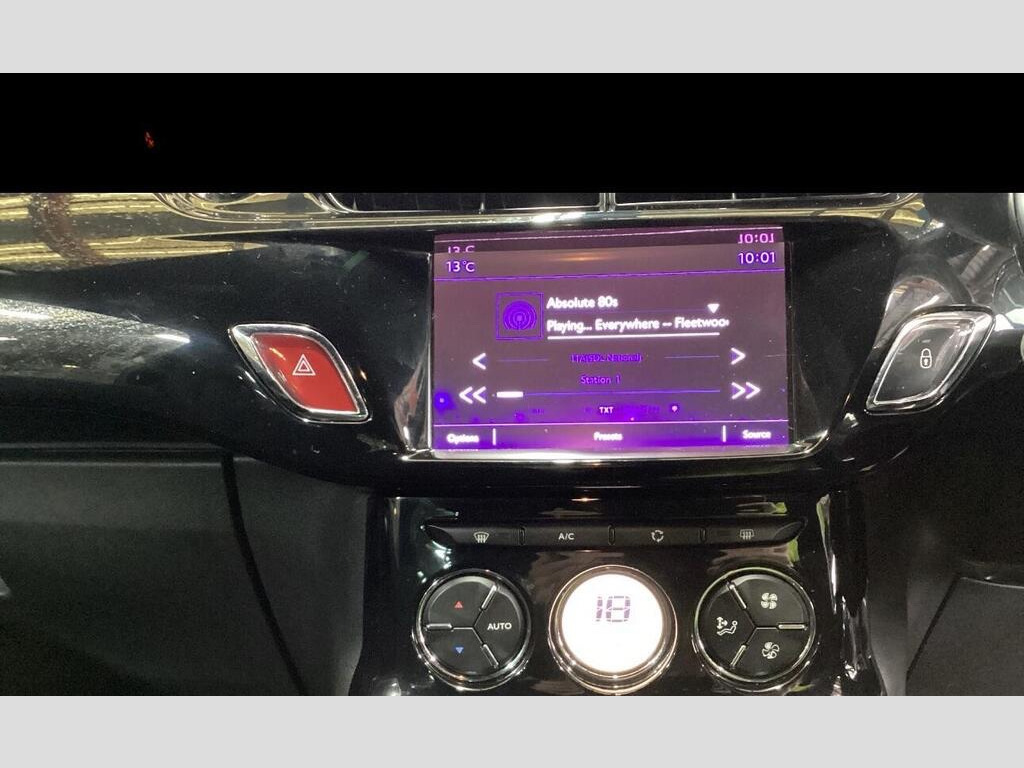 v socket - front, 7in touchscreen, auxilary socket, bluetooth handsfree, bluetooth media streaming, dab digital radio, ds connect box, hi-fi system audio upgrade, rds radio with 6 speakers and aux socket, speakers x6, usb socket, emyway satellite navigation, 17in alloy wheels - aphrodite black, chrome door handles, chrome front fog light surrounds, chrome front grille surround, chrome rear bumper insert, chrome side rubbing strips, compressor with puncture repair kit, dark tinted rear windows, door mirrors - roof coloured, electric windows - front with one-touch operation on drivers side, electrically adjustable door mirrors, 3d led rear lights, front fog lights, headlights - halogen, led daytime running lights, abs - anti-lock braking system, airbags - curtain, airbags - driver, airbags - front lateral, airbags - front passenger, eba - electronic brake assistance, ebd - electronic brakeforce distribution, esc - electronic stability control, front seat belt pre-tensioners with force limiters, isofix - child anchorage points - two outer rear, remote central locking, seat belt unfastened warning, traction control, air conditioning - automatic-digital, black panel night-time instrument lighting, boot lighting, bottle holder, chrome effect gear surround, door sill protectors - chrome, drivers and passengers sunvisor with courtesy mirror, front courtesy and reading lights, front seat back pockets, gloss black centre console, gloss black kit - gloss black dashboard with black gear knob, head restraints - rear, height and reach adjustable steering wheel, height-adjustable drivers seat, interior mood lighting, lashing eyes in the boot, leather handbrake with chrome insert, leather steering wheel with chrome inserts, rear split-folding seats, scented air freshener, soft-touch effect upper dashboard, steering wheel mounted controls, cruise control with speed limiter, exterior temperature display, multi-function on-board trip computer, rear parking sensors, sport suspension, tyre pressure monitor, variable-assistance power steering