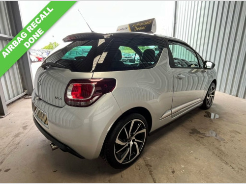 HAVE YOU READ OUR REVIEWS? PLEASE DO! NOTE- SIMILAR VEHICLES IN STOCK. AIRBAG RECALL DONE! THIS DS3 IS IN A DESIRABLE COLOUR WITH LOW MILES FOR THE AGE- 63K. WOULD MAKE A GREAT FIRST TIME CAR WITH ITS LOW RUNNING AND INSURANCE COSTS. WITH ONLY 2 PREVIOUS OWNERS FROM NEW, IT IS CLEAR IT HAS BEEN LOVED. SUPPLIED WITH A LONG MOT AND SERVICE HISTORY ATTACHED WIH 6 STAMPS- LAST DONE IN OUR WORKSHOP IN 4/25. MANY EXTRAS INCLUDING A ELECTRIC WINDOWS, AUX, USB, BLUETOOTH, MIRROR SCREEN, APPLE CAR PLAY, DAB RADIO AND CRUISE CONTROL. COMES WITH 2 KEYS. ONLY £20 ANNUAL TAX!   ALSO- ALL OF OUR VEHICLES COME WITH A 12 MONTH AA BREAKDOWN COVER AND 3 MONTHS WARRANTY (RESTRICTIONS APPLY).  PLEASE NOTE- The ABOVE VEHICLE SPECIFICATION IS CONFRIMED AND CORRECT. THE SPECIFICATION LISTED ELSEWHERE MAY SOMETIMES BE INACCURATE SO PLEASE CHECK WITH THE SALES EXECUTIVE WHEN ENQUIRING TO CLARIFY THIS PRIOR TO PURCHASE. Shark Grey with Black Roof, Chrome Door Mirrors, 12 Volt Socket in Cabin, 3D LED Rear Lights, 7in Touchscreen, ABS - Anti-lock Braking System with Elec, Alarm, Aluminium Sports Pedals, Automatic Air Conditioning, Black Panel On-Off Instrument Lighting, Bluetooth Handsfree and Media Streaming , Boot Lighting, Chrome DS Wings Grille, Chrome Door Handles, Chrome Front Fog Light Surrounds, Chrome Rear Bumper Insert, Chrome Side Rubbing Strips, Coloured Plip Key Insert, Compressor with Puncture Repair Kit, Cruise Control with Speed Limiter, DAB Digital Radio, DS Connect Box Emergency and Assistance , Dark Tinted Rear Windows, Driver-Front Passenger-Front Lateral and, Drivers Unfastened Seat Belt