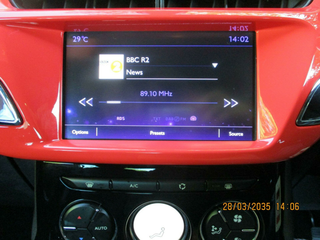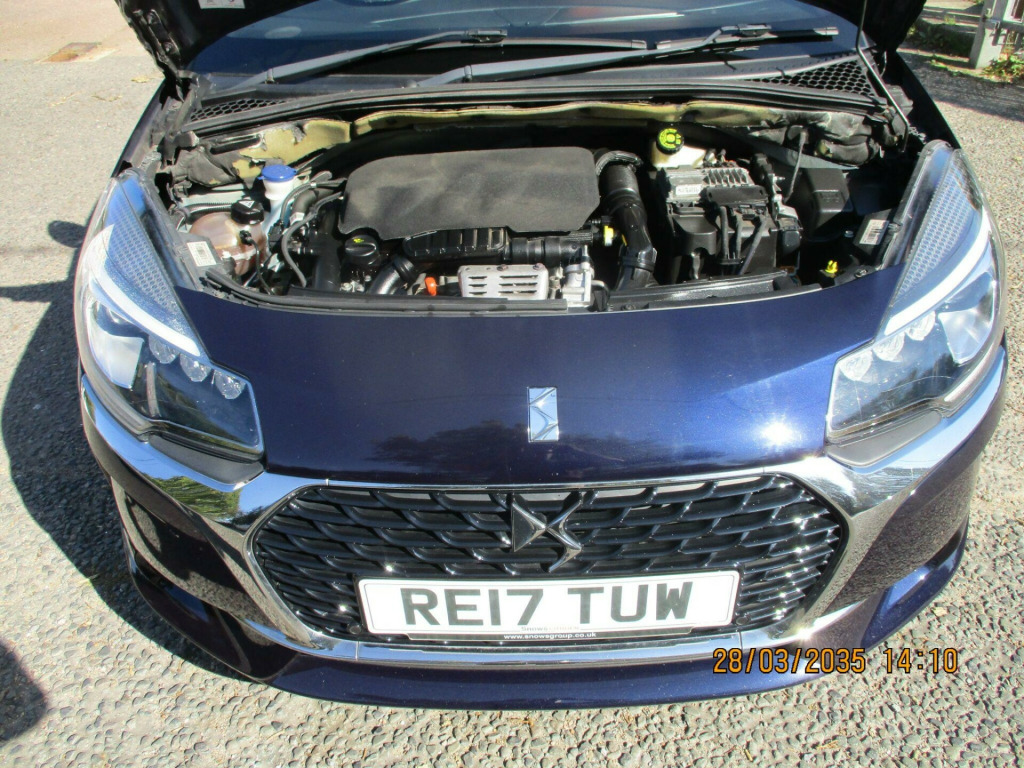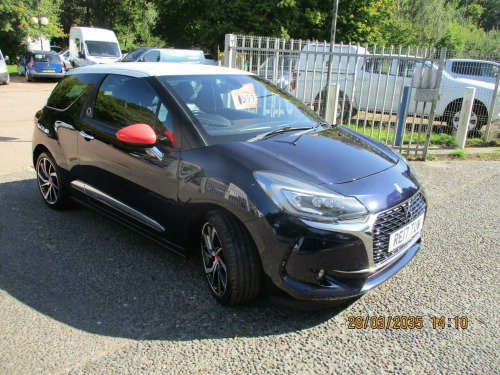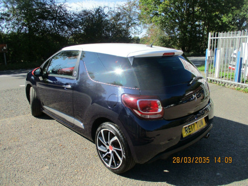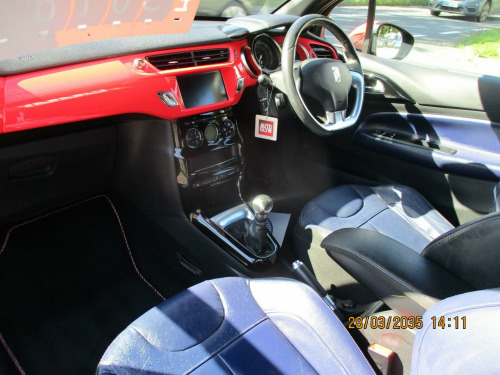 AIRCON+CRUISE+PARK ASSIST,this is a lovely looking very well cared for DS 3,its in very good condition throughout and drives great.there are 6 recorded services and will have a new mot test on sale.good extras,2 keys.finance arranged,rac warranty. volt socket in cabin, 17in alloy wheels - aphrodite black diamond-cut, 3d led rear lights, 7in touchscreen, abs - anti-lock braking system with electronic brakeforce distribution and emergency braking assistance, alarm, aluminium sports pedals, auto dimming electrochrome rear view mirror, automatic air conditioning, automatic lights and windscreen wipers, black panel on-off instrument lighting, bluetooth handsfree and media streaming with 1a usb socket, boot lighting, chrome ds wings grille, chrome door handles, chrome front fog light surrounds, chrome rear bumper insert, chrome side rubbing strips, compressor with puncture repair kit, cruise control with speed limiter, dab digital radio, ds connect box emergency and assistance system, ds led vision - xenon headlights, dark tinted rear windows, driver-front passenger-front lateral and curtain airbags, drivers unfastened seat belt warning, drivers and passengers sunvisor with courtesy mirror, esc - electronic stability control, electrically heated and folding door mirrors, embossed headrest cover, exterior temperature display, five 3-point inertia reel seat belts, front armrest, front courtesy and reading lights, front door pockets with bottle holder, front electric windows, front seat back pockets, front seat belt pretensioners, gei - gear efficiency indicator, gloss black centre console and interior door handle surrounds, height and reach adjustable steering wheel, height-adjustable drivers seat, height-adjustable front passenger seat, hill start assist, immobiliser, ines de la fressange - badging carpet mats instead, ines de la fressange exterior badging, integrated air freshener, interior mood lighting, led daytime running lights, led front fog lights, lashing eyes in the boot, leather gear knob, leather handbrake with chrome insert, locking wheel bolts, mirror screen with mirror link and car play, multi-function on-board trip computer, premium carpet mats, premium leather steering wheel finish, rds radio with 6 speakers and aux socket, rear parking sensors, rear split-folding seats, red dashboard with badging, red exterior door mirrors, red plip, red wheels centre caps, remote central control locking with deadlocks, rev counter, satin chrome door sill protectors, satin chrome gear surround, satin chrome steering wheel inserts, single chrome exhaust tailpipe, soft-touch upper dashboard, sport suspension, sports seats, steering wheel mounted controls, tricolour stickers on the windows, two rear isofix mounting points, tyre pressure monitor, variable-assistance power steering, emyway satellite navigation