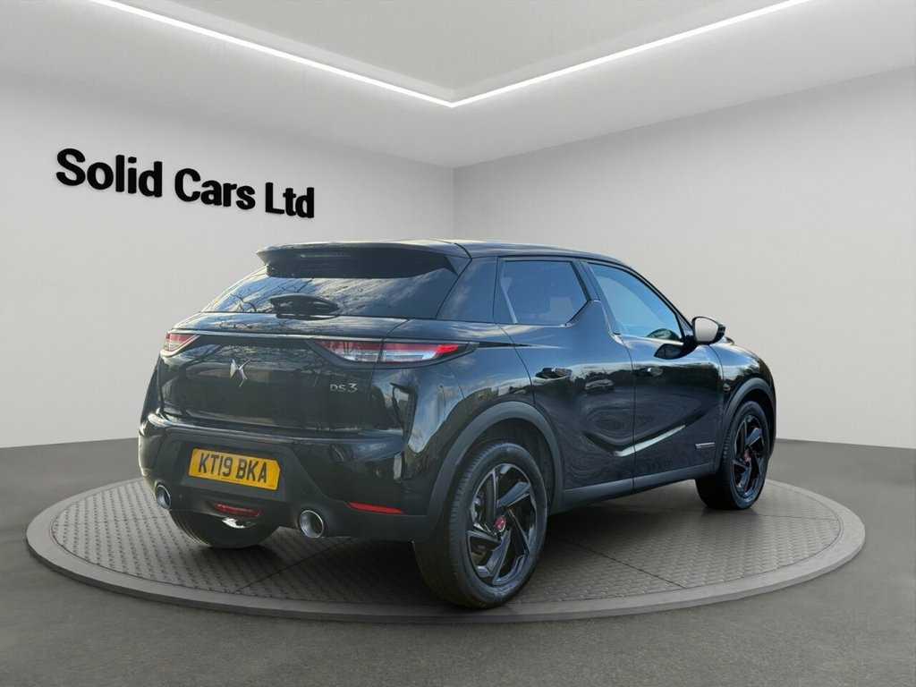 HUGE SPEC. / 2 OWNERS FROM NEW/ IMMACULATE CONDITION / FREE 6 MONTHS WARRANTY + 12 MONTHS MOT INCLUDED This 2019 DS 3 CROSSBACK PureTech La Premiere boasts exceptionally low mileage for its age, having covered just 6700 miles. This Euro 6 compliant 1.2L petrol model comes with a full service history, with its last service at 6732 miles, and will be supplied with 12 months MOT for your peace of mind. A 6 month warranty is also included. The La Premiere trim level offers a host of desirable features, including DS Smart Access with proximity keyless entry and start, and the convenient City Pack which provides front and rear parking assistance along with a rear camera. Experience advanced lighting with DS Matrix LED Vision headlights, and stay connected with Mirror Screen, compatible with both Android Auto and Apple CarPlay. For added convenience, this DS 3 CROSSBACK features wireless smartphone charging. With an impressive fuel economy of 46 mpg and low CO2 emissions, this vehicle offers a more economical and environmentally conscious driving experience compared to many others in its class. 10in HD Touchscreen, 12V Socket, 18in Alloy Wheels - Monza Black Onyx Dia, 3D LED Rear Lights, 40-60 Split Rear Seats Backrest, 8 Speakers, ABS - Anti-lock Braking System, Acoustic and Tinted Front and Rear Winds, Advanced Technology Package, Airbags - Front - Rear Lateral and Curta, Alarm - Perimetric and Volumetric, Armrest - Front Centre, Art Rubis Nappa Leather Decor, Automatic Air Conditioning, Automatic Front Windscreen Wipers, Automatic Rear Wiper when Reverse Gear i, Bag Support Hooks in the Boot, Black Centre Caps with DS Logo, Black Interior Roof, Black Premium Leather Steering Wheel, Bluetooth Handsfree and Media Streaming , Boot Lighting, Chrome Door Handles, City Pack, DAB Digit