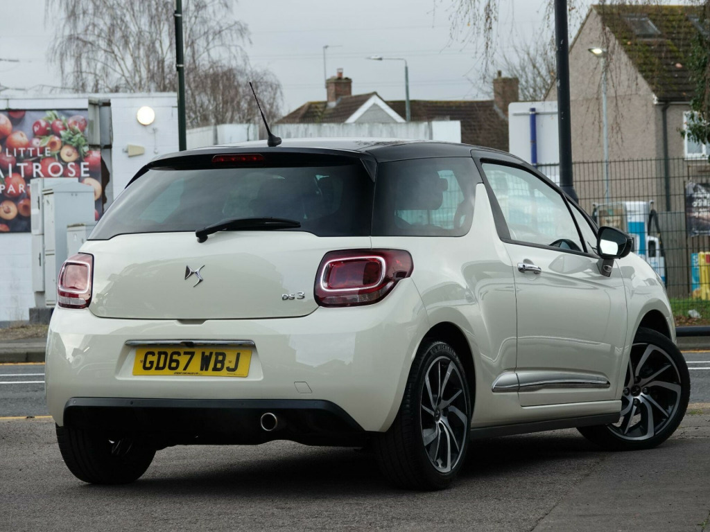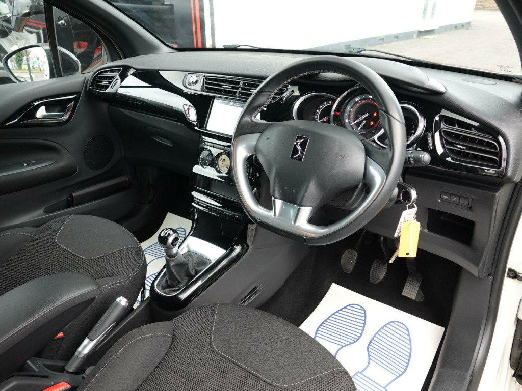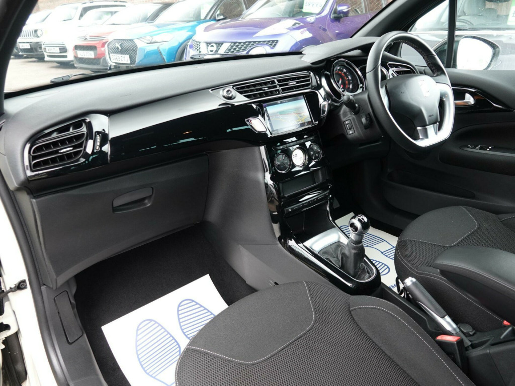 Boasting exceptionally low mileage for its age, this 2018 DS 3 PureTech Parthenon Cream offers a superb ownership proposition. With only 22,524 miles on the clock and a full service history culminating in a recent service on 12th March 2025 at 20,778 miles, this Euro 6 compliant 1.2 litre petrol model comes with a clear vehicle history check and a 3 month warranty for your peace of mind. The Parthenon Cream trim level ensures a stylish finish, and you'll appreciate the convenience of Mirror Screen with Mirror Link, Bluetooth handsfree with media streaming and a USB socket, rear parking sensors, a reversing camera, and automatic air conditioning.This DS 3 stands out with its impressive fuel economy, achieving an excellent 61 miles per gallon, which is a significant advantage over many similar vehicles. Its low CO2 emissions also contribute to its appeal, making it a more economical choice. Furthermore, the vehicle will be provided with 12 months MOT, ensuring it is roadworthy and ready for you to enjoy. yados cloth - basalt black, 12 volt socket in cabin, 17in alloy wheels - aphrodite black diamond-cut, 3d led rear lights, 7in colour touchscreen, abs - anti-lock braking system with electronic brakeforce distribution and emergency braking assistance, alarm, automatic air conditioning, black panel on-off instrument lighting, bluetooth handsfree and media streaming with usb socket, boot lighting, chrome ds wings grille, chrome door handles, chrome side rubbing strips, coloured plip key insert, compressor with puncture repair kit, cruise control with speed limiter, dab digital radio, ds connect box emergency and assistance system, dark tinted rear windows, driver-front passenger-front lateral and curtain airbags, drivers unfastened seat belt warning, drivers and passengers sunvisor with courtesy mirror, esc - electronic stability control, electrically adjustable door mirrors, exterior temperature display, five 3-point inertia reel seat belts, front armrest, front courtesy and reading lights, front door pockets with bottle holder, front electric windows, front parking sensors, front seat back pockets, front seat belt pretensioners, gei - gear efficiency indicator, gloss black centre console and interior door handle surrounds, gloss black gear knob, gloss black kit - gloss black dashboard strip, height and reach adjustable steering wheel, height-adjustable drivers seat, height-adjustable halogen headlights, immobiliser, integrated air freshener, interior mood lighting, led daytime running lights, led front fog lights, lashing eyes in the boot, leather handbrake with chrome insert, leather steering wheel, locking wheel bolts, mirror screen with mirror link and car play, multi-function on-board trip computer, rds radio with 6 speakers and aux socket, rear parking sensors, rear split-folding seats, remote central control locking with deadlocks, rev counter, reversing camera, roof colour painted door mirrors, satellite navigation, satin chrome door sill protectors, satin chrome steering wheel inserts, single chrome exhaust tailpipe, soft-touch upper dashboard, sport suspension, steering wheel mounted controls, two rear isofix mounting points, tyre pressure monitor, variable-assistance power steering