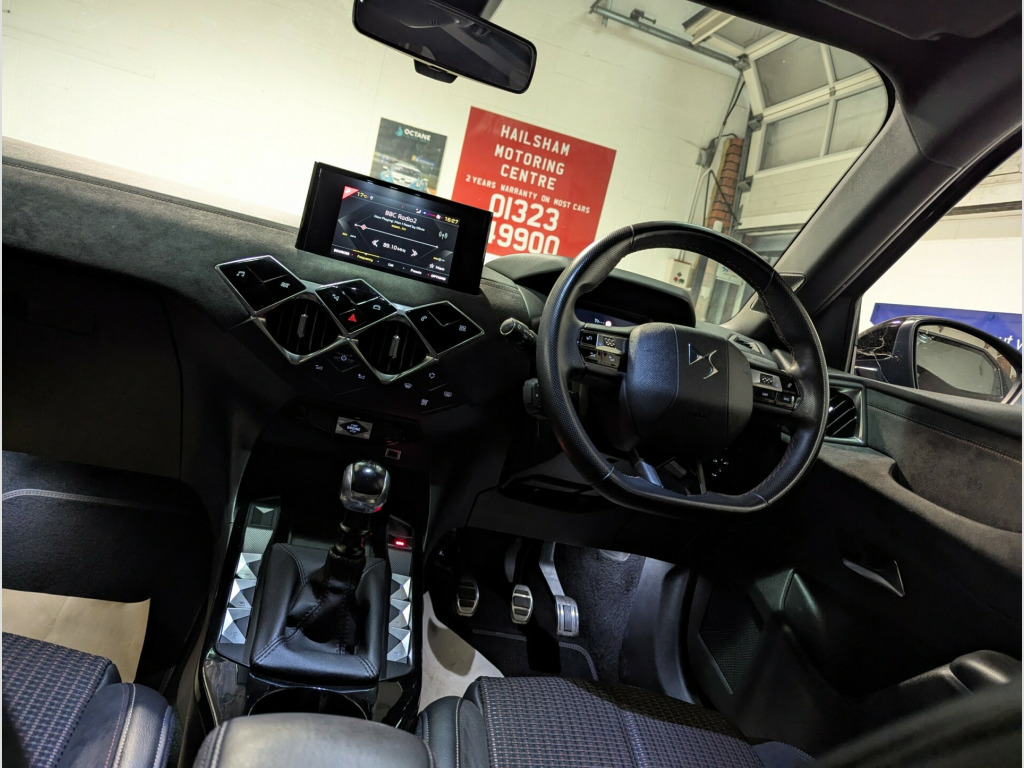 FREE 2-YRS PARTS & LABOUR WARRANTY. Hailsham Motoring Centre are pleased to be offering this ULEZ compliant 2019 DS DS 3 1.2 PureTech Performance Line 5dr for sale, with ONLY ONE OWNER FROM NEW and 20,400 miles. This car comes with MAIN DEALER SERVICE HISTORY, and will leave with an interim service, new MOT and a PDI. Finished in metallic Perla Nera black with grey cloth trim which adds a touch of sophistication.**WHY BUY FROM US****Established In 1980****24 Month Warranty On All Cars Over £2995, & Those Not Covered By A Manufactures Warranty** ** All Our Cars Are Hpi Clear So You Can Buy With Confidence****Competitive Finance Rates Subject To Status****Multi Branches****Open 7 Days a Week Inc Bank Holidays****Monday - Friday - 8.30am to 6pm****Saturday - 9.00am to 5pm****Sunday - 10am to 4pm****Bank holidays 10am to 4pm**For more pictures and a walk around video please go to https://www.hailshammotoringcentre.co.uk/Please call to arrange viewing and a test drive on01323 449900.Here at Hailsham Motoring Centre, we have up to 50 cars & a small selection vans on show, also at our Hampden Park branch we have up to 50 further cars & a small selection vans available for viewing, please call 01323 507307 for more info.For more information on our DS3 please see the benefits below as stated,  uetooth handsfree and media steaming with 1a usb socket, ds connect box emergency and assistance system, ds sensorial drive in cashmere/ titanium modes, mirror screen with mirror link, apple carplay and android auto, multi function on board trip computer, pas, rear parking sensors, service indicator, speed limit recognition and speed warning, dab digital radio, usb connection, acoustic and tinted front and rear windscreens, automatic lights, automatic triggered rear windscreen wiper in reverse gear, body coloured bumpers, chrome door handles, chrome front door sill trim, dark tinted rear windows, ds monogram on rear tailgate, electrically adjustable door mirrors, electrochrome door mirrors, flush fitting exterior door handles, front and rear electric windows, gloss black exterior door mirrors, halogen headlights, heated door mirrors, heated rear windscreen, led rear number plate lights, single exhaust tailpipe, 12v socket, 60/40 split rear seat back, adjustable front and rear headrests, adjustable steering wheel, aluminium sports pedals, bag support hooks in the boot, black roof liner, boot light, driver and passenger sunvisors with illuminated led vanity mirrors, front + rear carpet mats, front and rear led reading lights, front central armrest, front/rear passenger grab handles, height adjustable front seats, odour filter, perforated leather steering wheel with contrast stitching - black, premium seat with comfort foam and pads & map pocket, twin front cupholders, two rear isofix mounting points, woven cloth/alcantara upholstery, 3x3 point rear seatbelts, abs, airbags - front / rear lateral and curtain airbags, electric parking brake, esp, height adjustable front seatbelts with pretensioners and front and rear load limiter, hill assist control, seatbelt warning, tyre pressure monitoring system, warning triangle on boot lid, immobiliser, locking wheel nuts, perimetric and volumetric anti theft alarm, remote central locking + deadlocks, performance line monogram on the dashboard, red carmine centre caps with ds logo, 24 months warranty free, 17'' Alloys