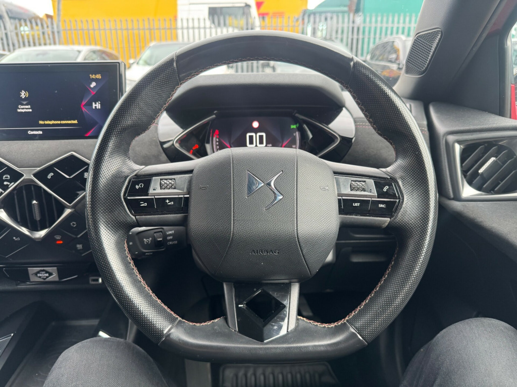 New Service, Service History, Offering New MOT, Front and Rear Parking Sensors Rear Camera, Wireless Phone Charger, 2 Keys, HPI Clear, Offering Up-To 4 Years Warranty Including Parts & Labour, 12 Months Free AA Breakdown Cover, Part Exchange Welcome, Competitive Finance Packages Available, Drive away with AA 5 Days Insurance for £44.99 (25 Years of Age and Over), Please Call to Arrange a Viewing or If you Have any Questions, v socket, 7in touchscreen, 8 speakers, bluetooth handsfree and media streaming with usb socket, dab digital radio, ds connect box emergency and assistance system, ds smart access, mirror screen with android auto and apple car play, one front usb connection point, 17in alloy wheels - dubai black onyx, acoustic and tinted front and rear windscreen, chrome door handles, ds monogram on the rear tailgate, dark tinted rear windows, door mirrors - electrically folding and dimming with ds led spotlight, flush fitting door handles, front and rear electric windows, gloss black door mirrors, heated rear windscreen, locking wheel bolts, performance line monogram on dashboard, red carmine centre caps with ds logo, single exhaust tailpipe, space saver spare wheel, 3d led rear lights, headlights - automatic, headlights - halogen, 40-60 split rear seats backrest, aluminium sports pedals, armrest - front centre, bag support hooks in the boot, black interior roof, boot lighting, ds inspiration - performance line, drivers and passengers sunvisor with courtesy mirror, front chromed door entry sill, front double cup holder, front and rear carpet mats, front and rear courtesy reading lights - led, front and rear grab handles, height adjustable front and rear headrests, height-adjustable drivers seat, height-adjustable front passenger seat, keyless start, manual air conditioning, odour filter, perforated leather sports steering wheel, performance line alcantara decor, premium seat with comfort foam and pads and map pocket, abs - anti-lock braking system, airbags - front - rear lateral and curtain, alarm - perimetric and volumetric, automatic rear wiper when reverse gear is selected, esp - electronic stability programme, electric parking brake, height adjustable front seat belts with pre-tensioners and front and rear load limiter, hill start assist, rear number plate led lights, remote central control locking with deadlocks, safety pack, seat belt unfastened warning, two rear isofix mounting points, warning triangle fasteners in the boot, multi-function on-board trip computer, power assisted steering, rear parking sensors, tyre pressure monitor, vehicle speed in excess of speed limit warning