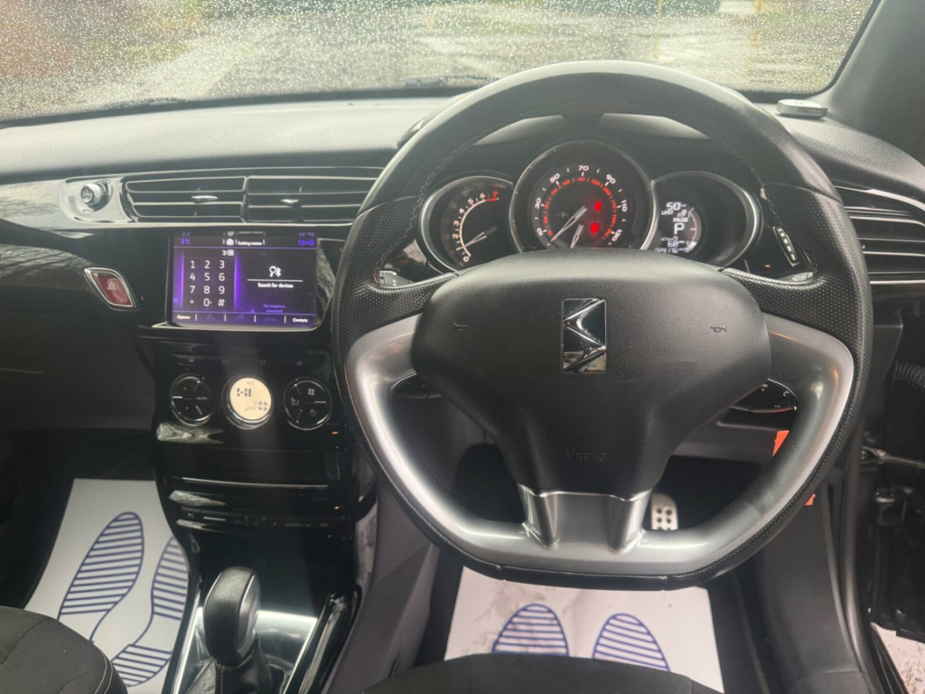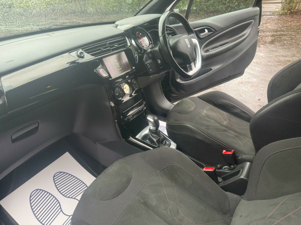 LOW MILEAGE AT 29000 MILES AND IN EXCELLENT CONDITION , FULLY AUTOMATIC TRANSMSSION WITH FANTASTIC SPECIFICATION , BLUETOOTH , CRUISE CONTROL , REAR PARK ASSIST , DRIVES BRILLIANTLY , SERVICE HISTORY , 12 MONTHS MOT AND 3 MONTHS WARRANTY. 12 Volt Socket in Cabin, 17in Alloy Wheels - Aphrodite Gloss Black, 3D LED Rear Lights, 7in Touchscreen, ABS - Anti-lock Braking System with Electronic Brakeforce Distribution and Emergency Braking Assistance, Alarm, Aluminium Sports Pedals, Automatic Air Conditioning, Black Panel On-Off Instrument Lighting, Bluetooth Handsfree and Media Streaming with 1A USB Socket, Boot Lighting, Chrome DS Wings Grille, Chrome Door Handles, Chrome Front Fog Light Surrounds, Chrome Rear Bumper Insert, Chrome Side Rubbing Strips, Coloured Plip Key Insert, Compressor with Puncture Repair Kit, Cruise Control with Speed Limiter, DAB Digital Radio, DS Connect Box Emergency and Assistance System, DS Performance Coloured Stitching, DS Performance Stripe Graphics, Dark Tinted Rear Windows, Driver-Front Passenger-Front Lateral and Curtain Airbags, Drivers Unfastened Seat Belt Warning, Drivers and Passengers Sunvisor with Courtesy Mirror, ESC - Electronic Stability Control, Electrically Adjustable Door Mirrors, Exterior Temperature Display, Five 3-Point Inertia Reel Seat Belts, Front Courtesy and Reading Lights, Front Door Pockets with Bottle Holder, Front Electric Windows, Front Seat Back Pockets, Front Seat Belt Pretensioners, Gloss Black Centre Console and Interior Door Handle Surrounds, Gloss Black Kit - Gloss Black Dashboard Strip, Height and Reach Adjustable Steering Wheel, Height-Adjustable Drivers Seat, Height-Adjustable Front Passenger Seat, Height-Adjustable Halogen Headlights, Hill Start Assist, Immobiliser, Integrated Air Freshener, Interior Mood Lighting, LED Daytime Running Lights, LED Front Fog Lights, Lashing Eyes in the Boot, Leather Gear Knob, Leather Handbrake with Chrome Insert, Leather Instrument Binnacle, Locking Wheel Bolts, Mirror Screen with Mirror Link and Car Play, Multi-Function On-Board Trip Computer, Perforated Leather Sports Steering Wheel, Performance Line Badging, Performance Line Carpet Mats, Premium Carpet Mats, RDS Radio with 6 Speakers and AUX Socket, Rear Parking Sensors, Rear Split-Folding Seats, Rear Spoiler, Remote Central Control Locking with Deadlocks, Rev Counter, Roof Colour Painted Door Mirrors, Satin Chrome Door Sill Protectors, Satin Chrome Gear Surround, Satin Chrome Steering Wheel Inserts, Single Chrome Exhaust Tailpipe, Soft-Touch Upper Dashboard, Sport Suspension, Sports Seats, Steering Wheel Mounted Controls, Two Rear ISOFIX Mounting Points, Tyre Pressure Monitor, Variable-Assistance Power Steering, eMyWay Satellite Navigation.